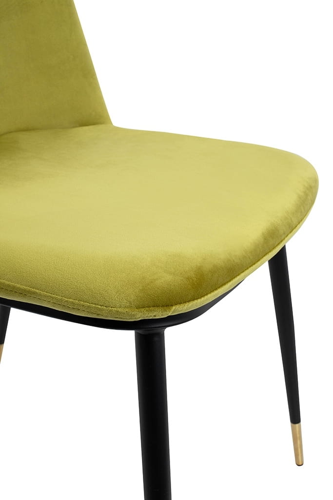Krzesło welurowe, jasnozielone do jadalni, czarne nogi ze złotymi akcentami Diego