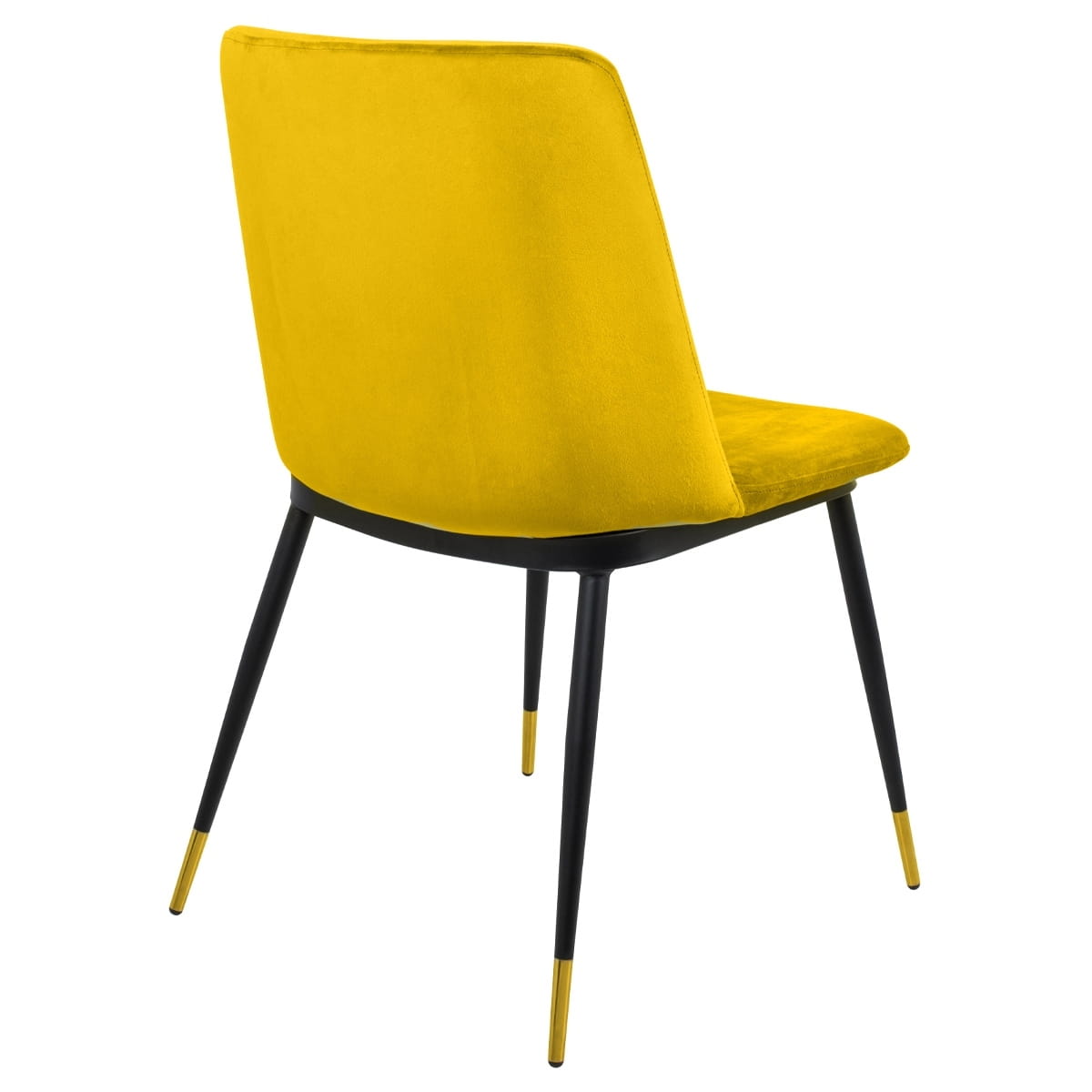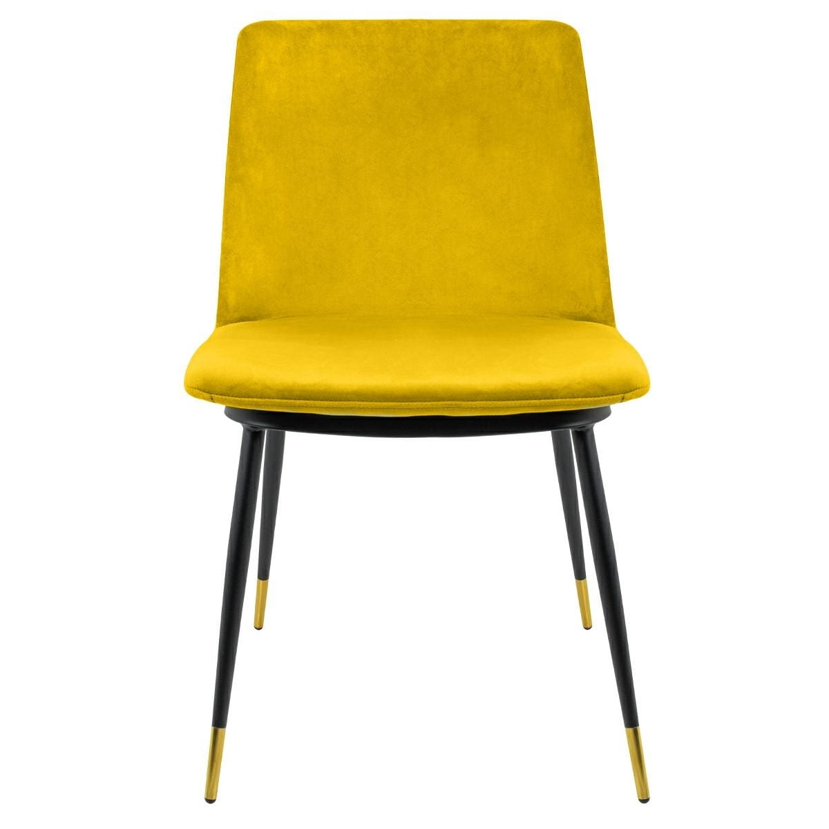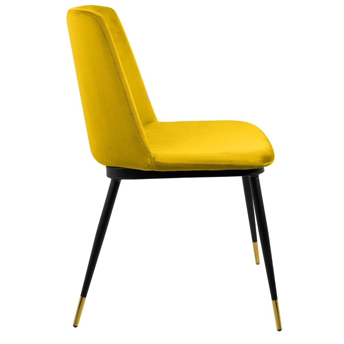 Krzesło welurowe, żółte do jadalni, czarne nogi ze złotymi akcentami Diego