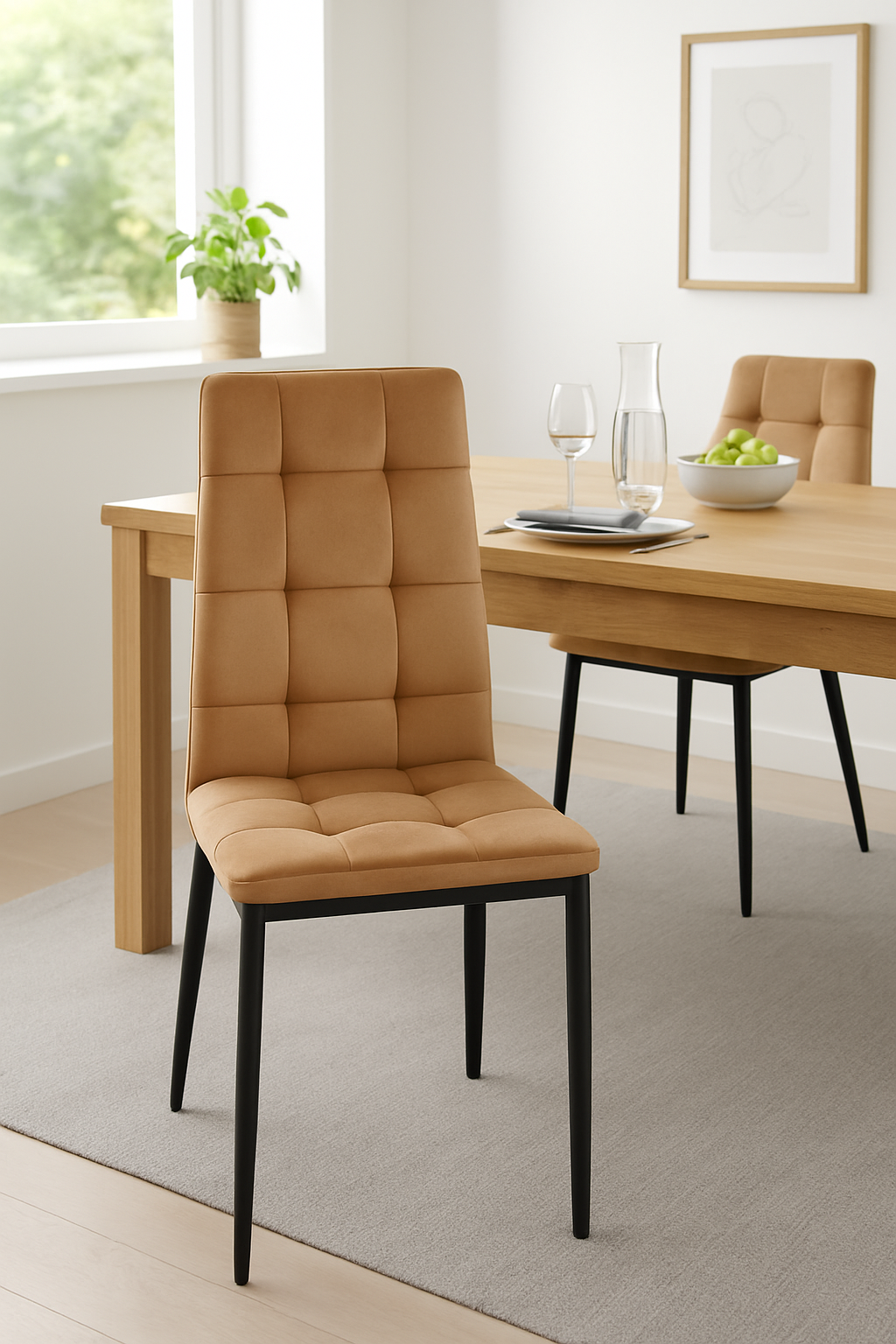 Stabilny stelaż z metalu malowanego proszkowo na czarno zapewnia trwałość i solidność konstrukcji. Dzięki swojej smukłej sylwetce i stylowemu wykończeniu krzesło Greg świetnie uzupełnia zarówno klasyczne, jak i nowoczesne aranżacje wnętrz.