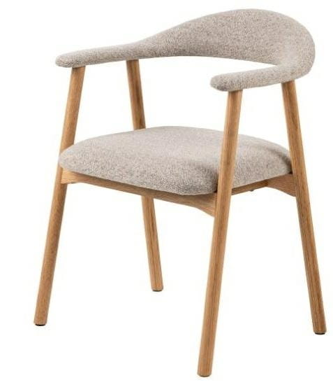 Krzesło Addi z podłokietnikami to krzesło w stylu boho z tapicerowanym siedziskiem i oparciem.