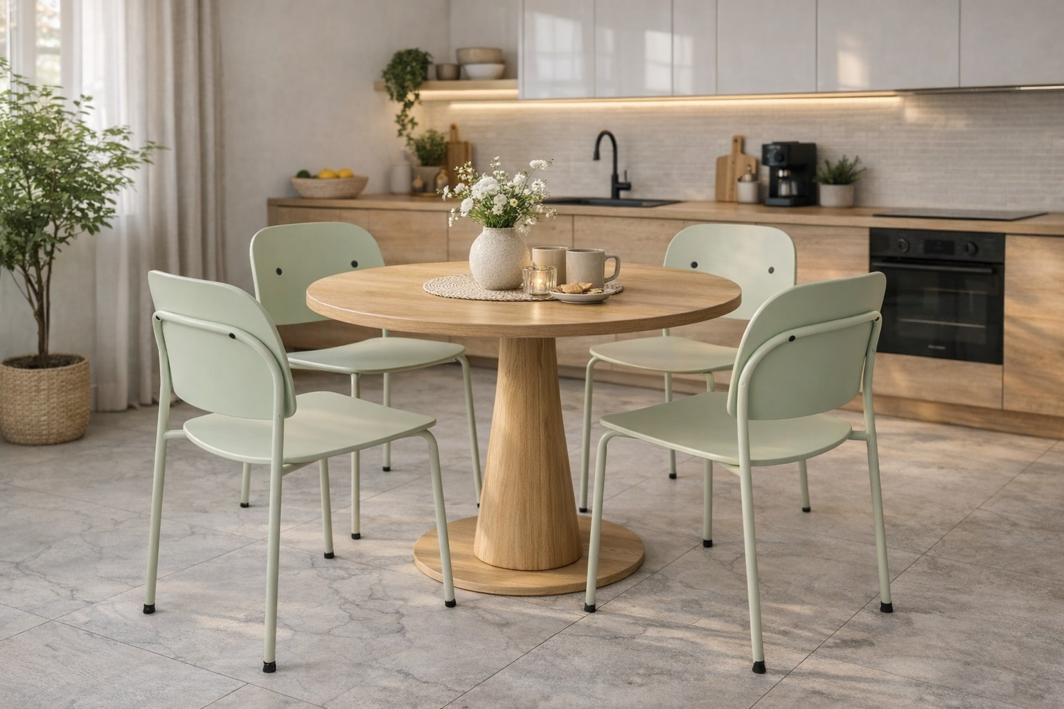 - Siedzisko i oparcie z tworzywa PP – lekkie, trwałe i łatwe do utrzymania w czystości