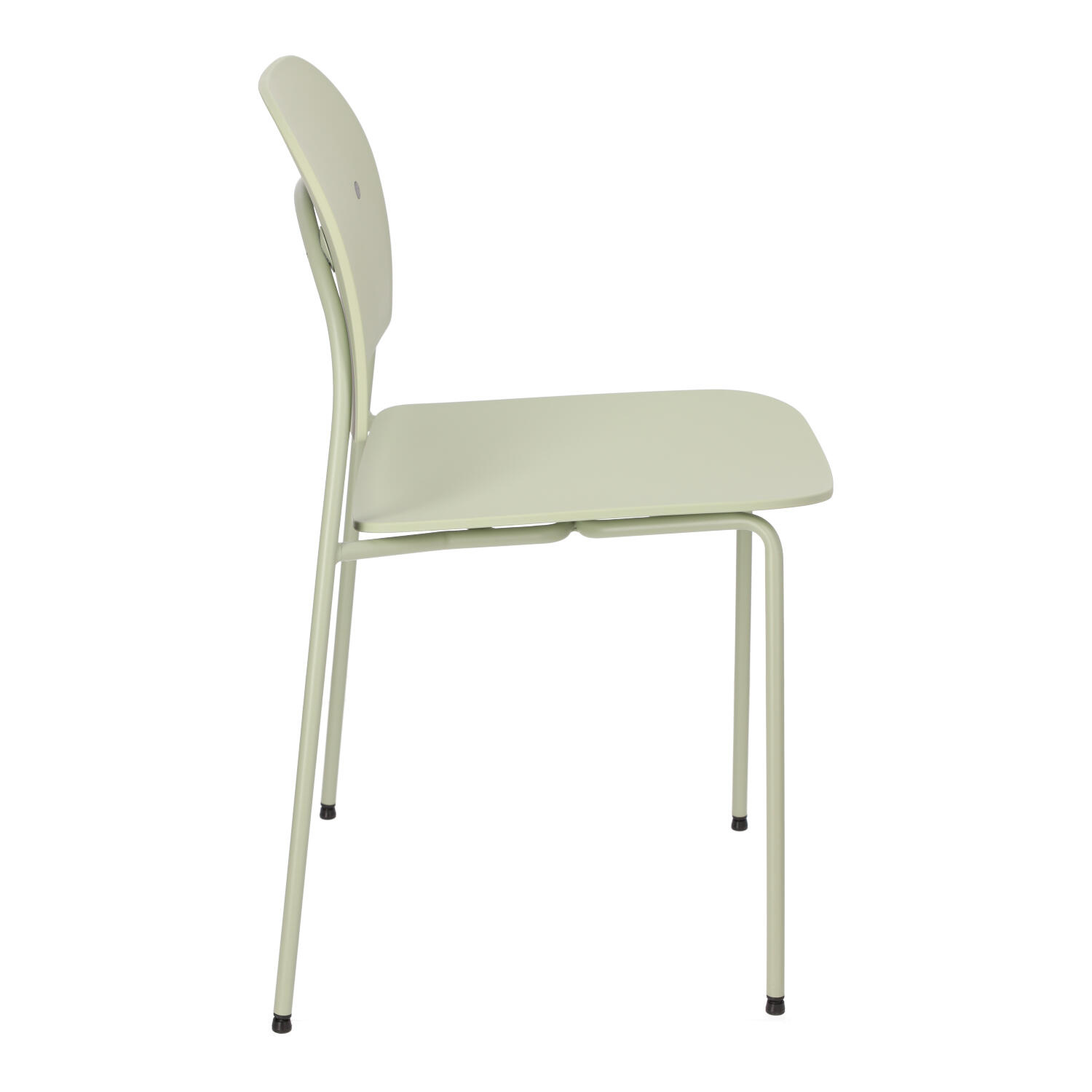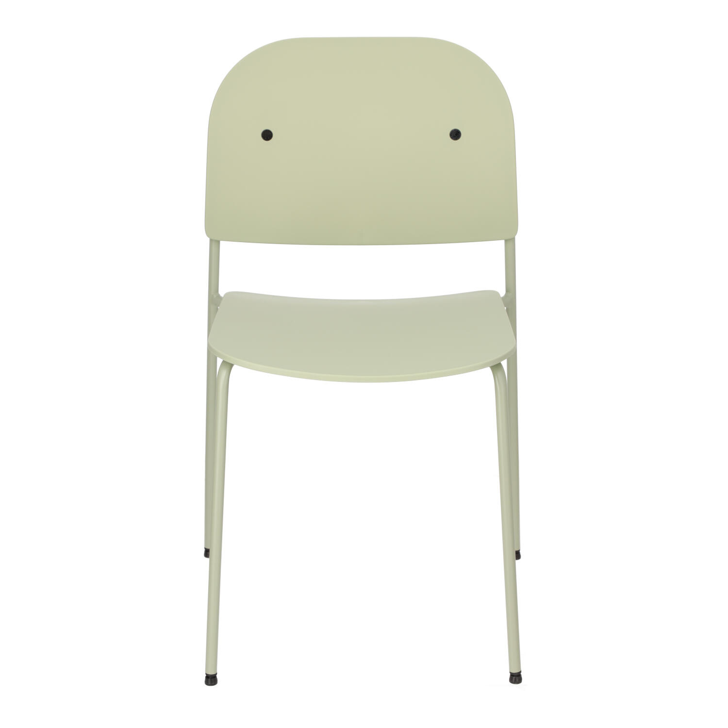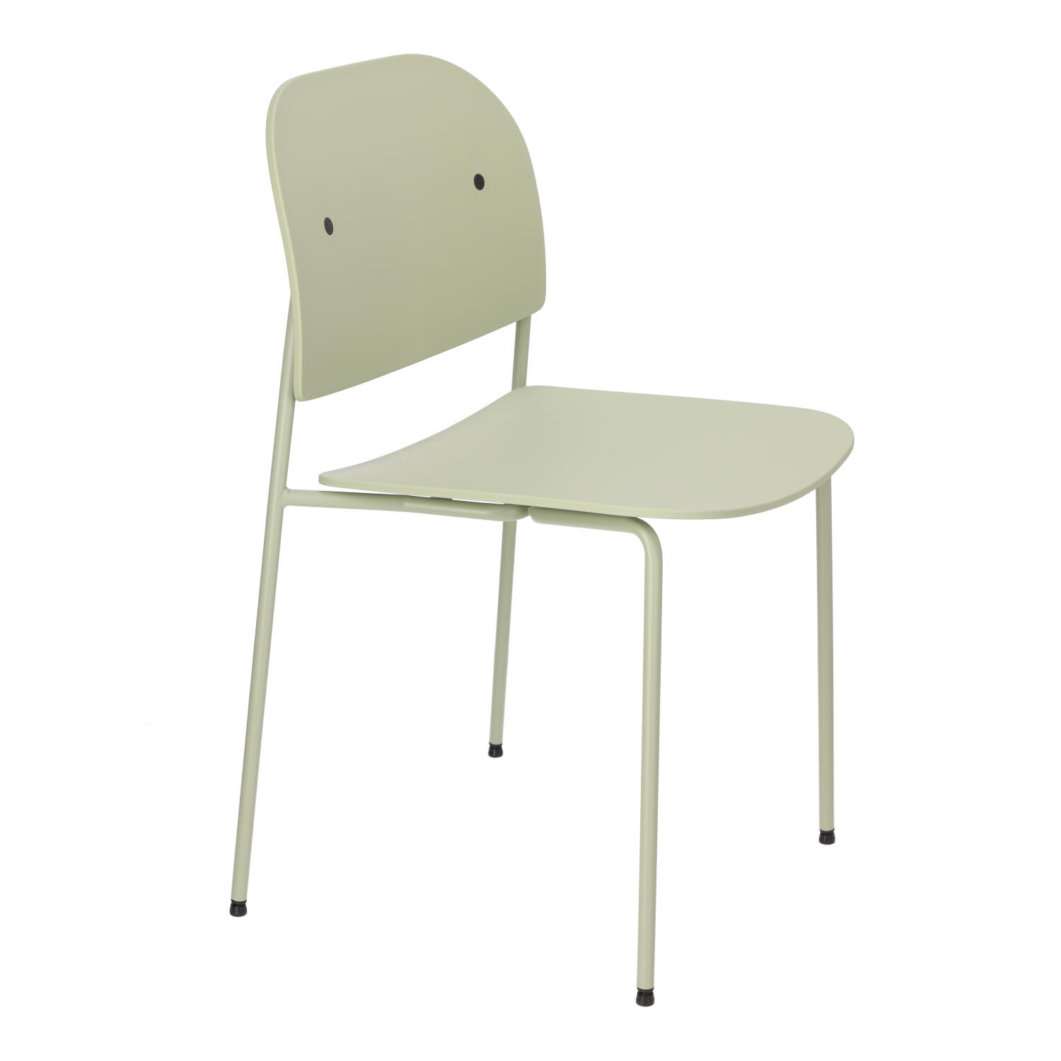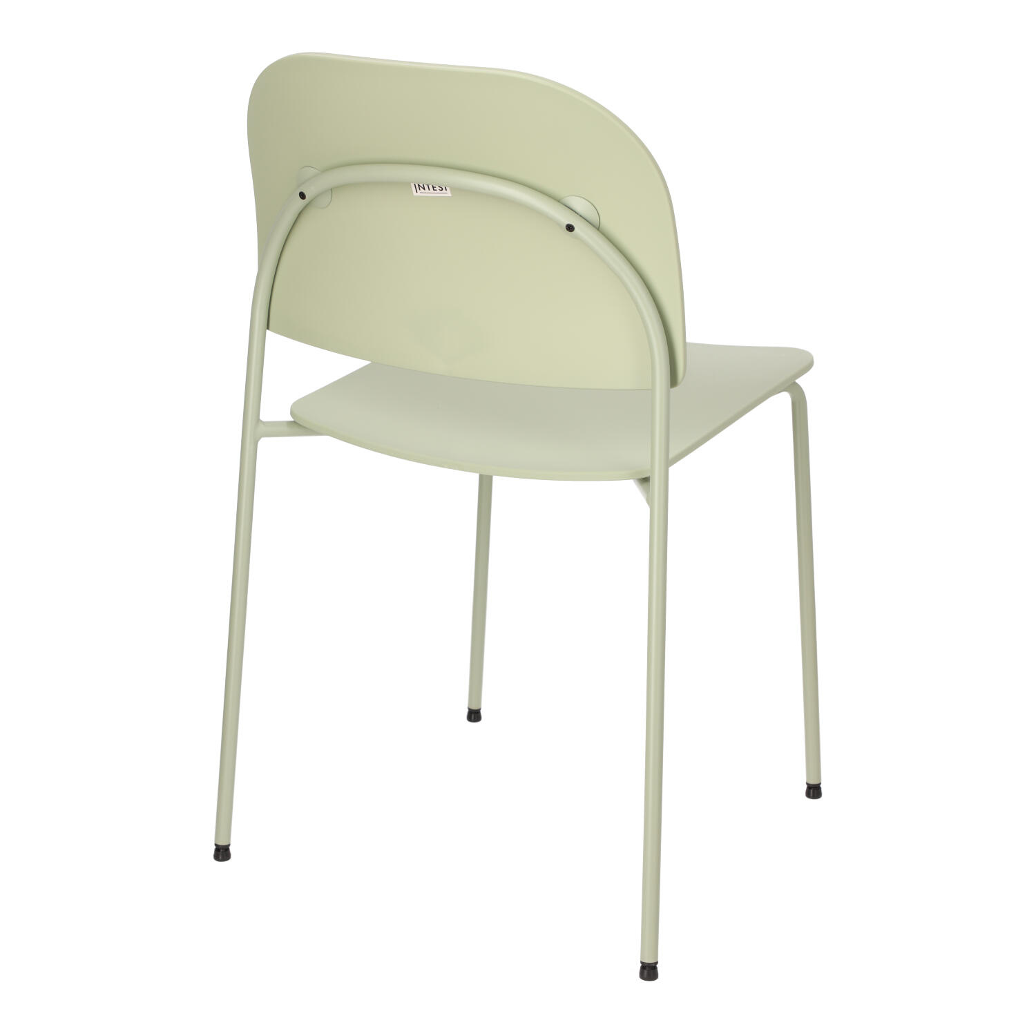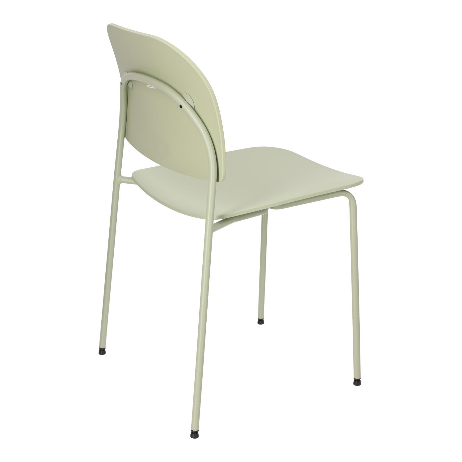 Siedzisko oraz oparcie wykonano z trwałego tworzywa PP, które jest lekkie, praktyczne w codziennym użytkowaniu i łatwe do utrzymania w czystości.