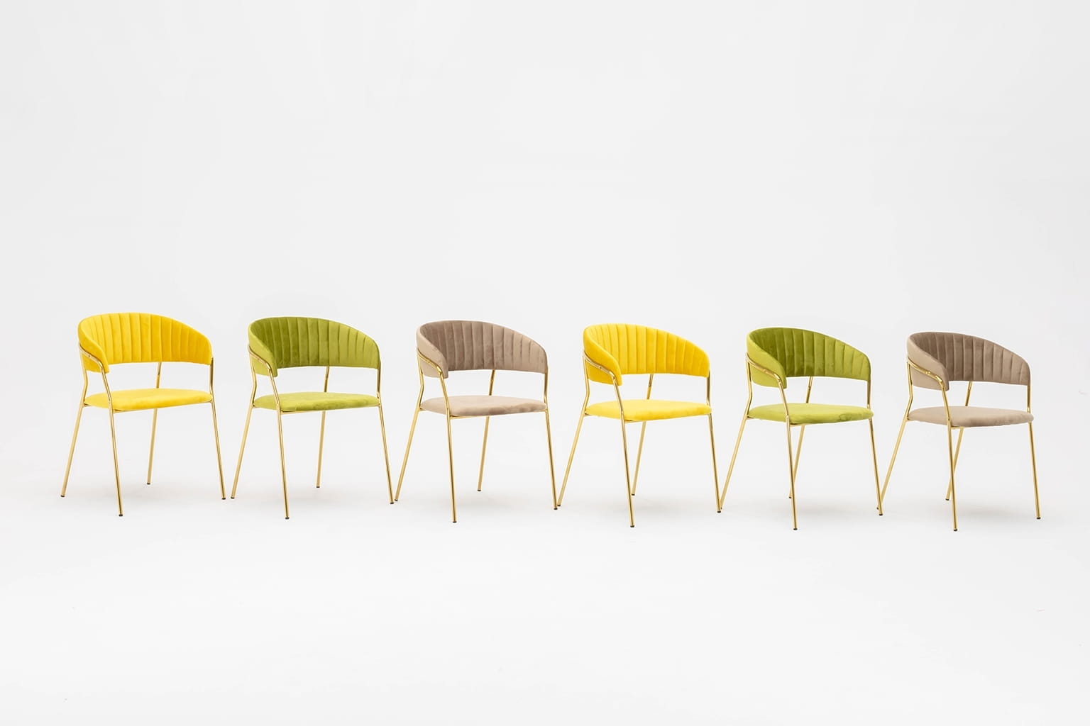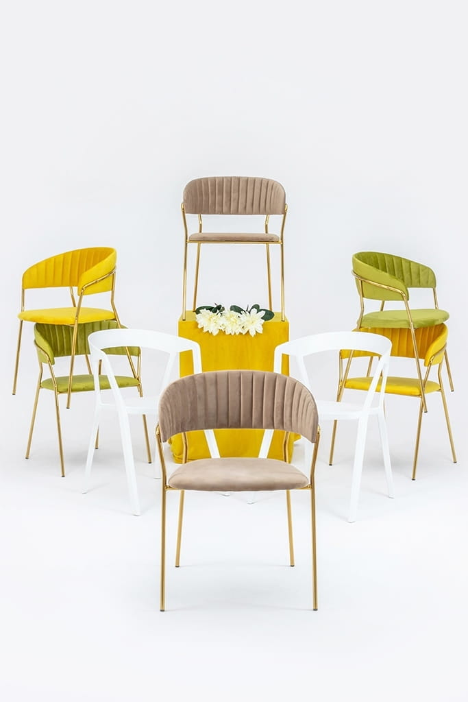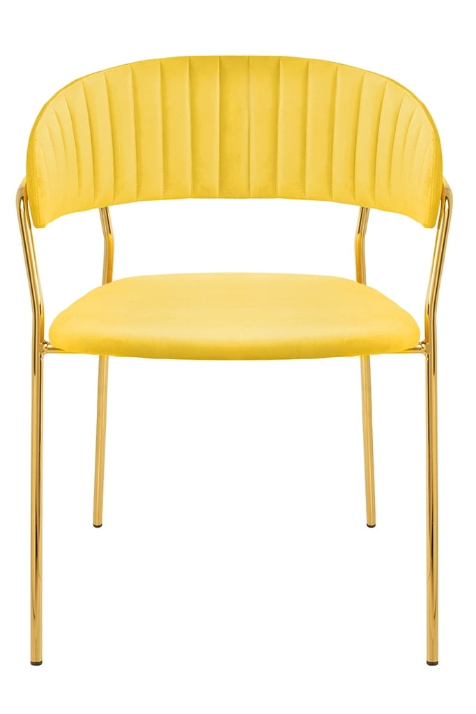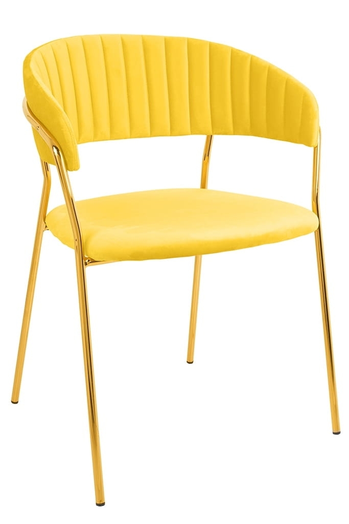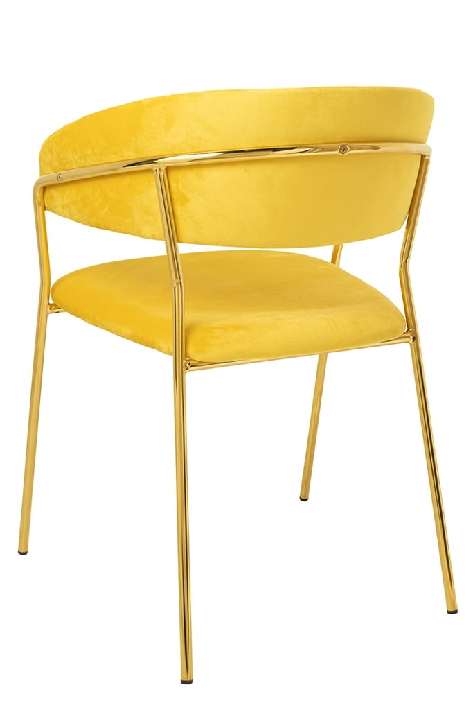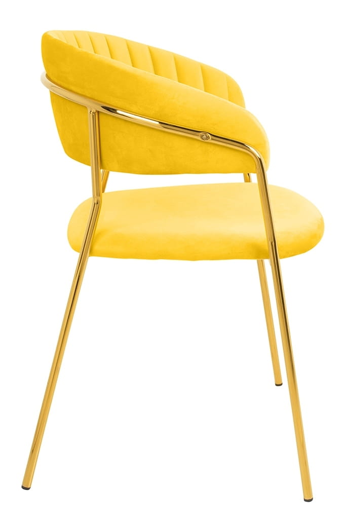 Krzesło zółte, welurowe, podstawa złota, Margo