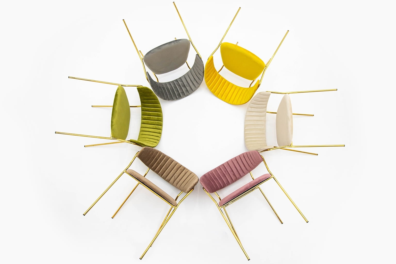 Daj się oczarować połączeniu modnej tkaniny welurowej z efektownym złotem.