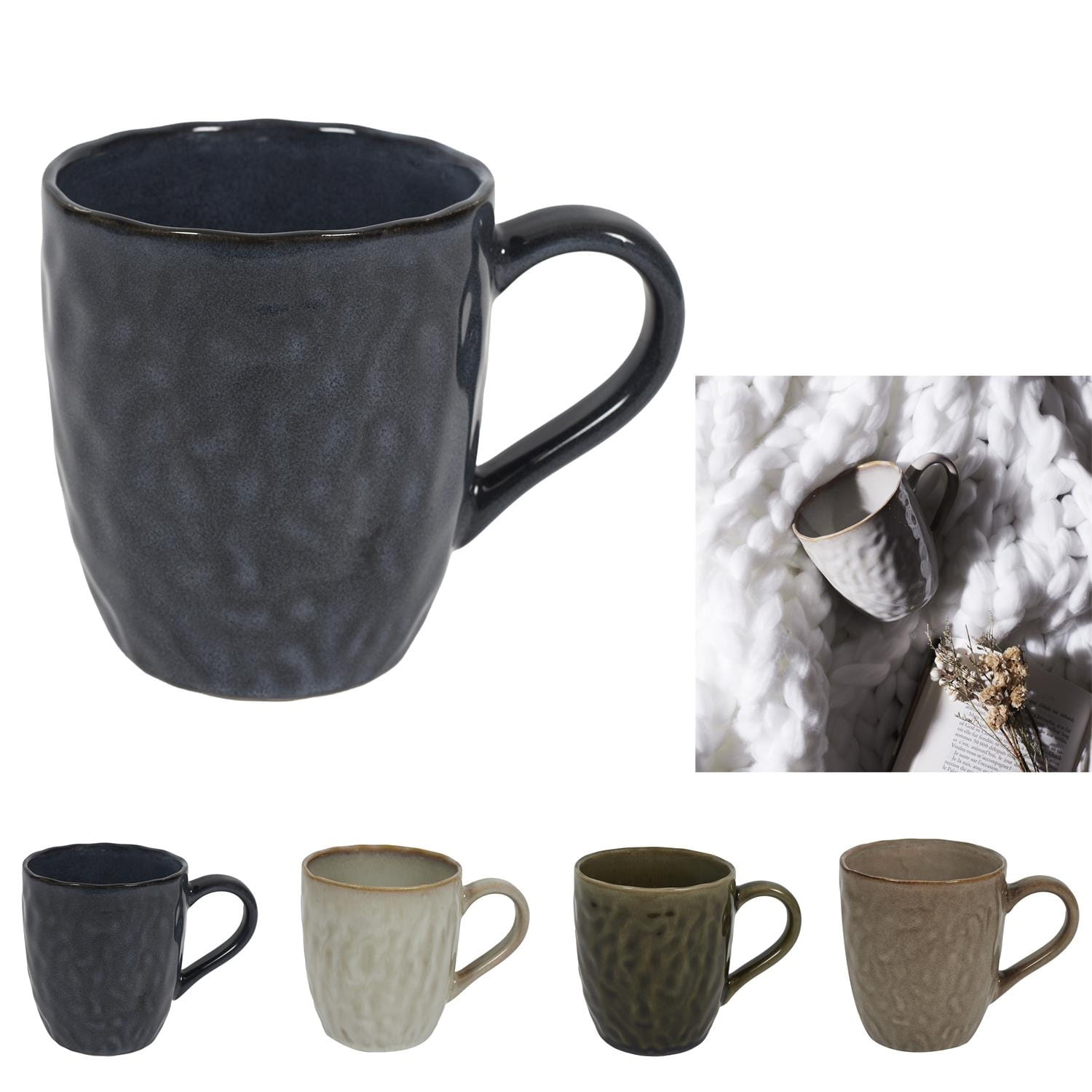 Kubek o nieregularnym kształcie dostępny jest w 4 kolorach.