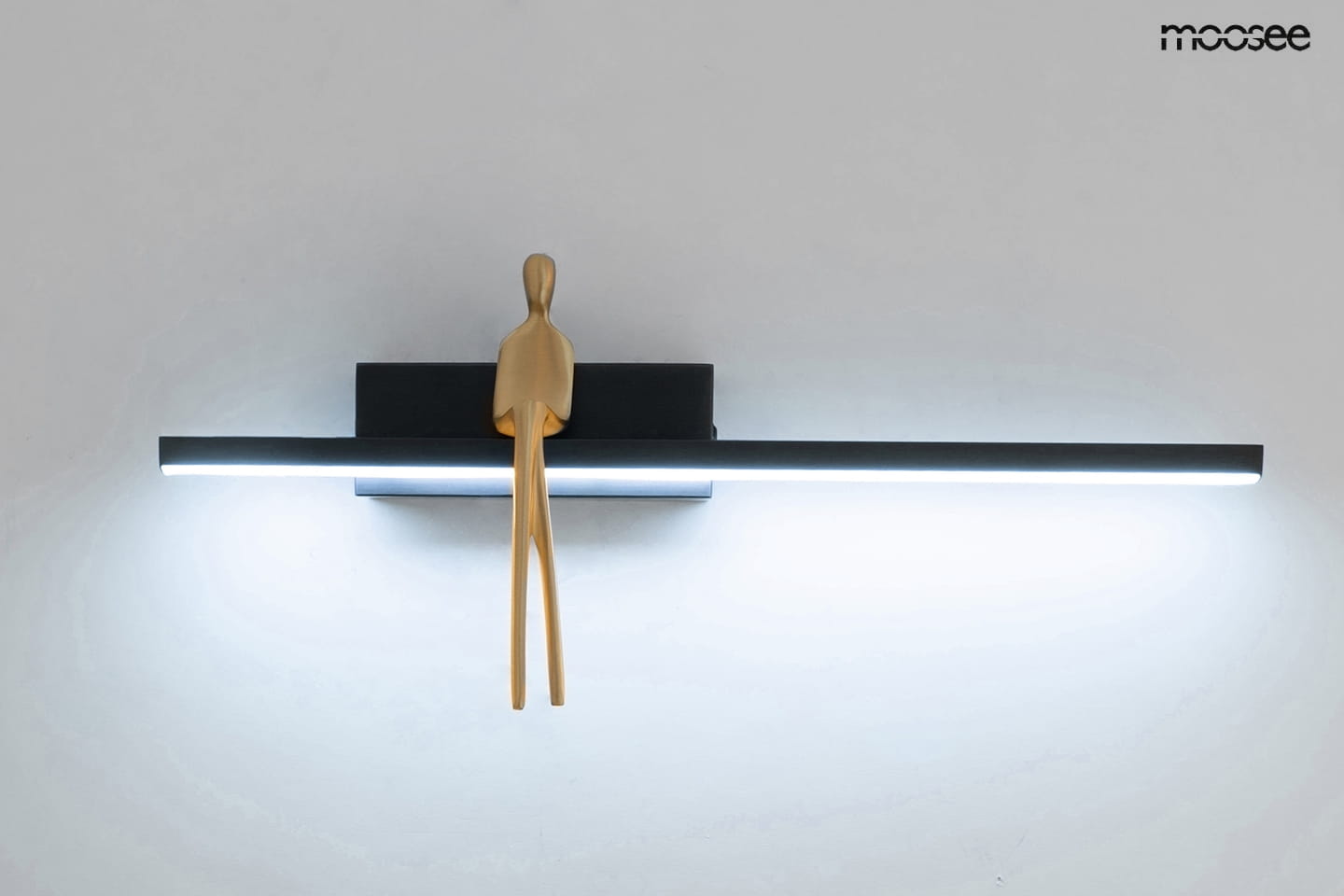 Kinkiet MOOSEE BOY w czerni to designerska lampa ścienna z motywem postaci, wykonana z czarnej stali i mosiądzu.
