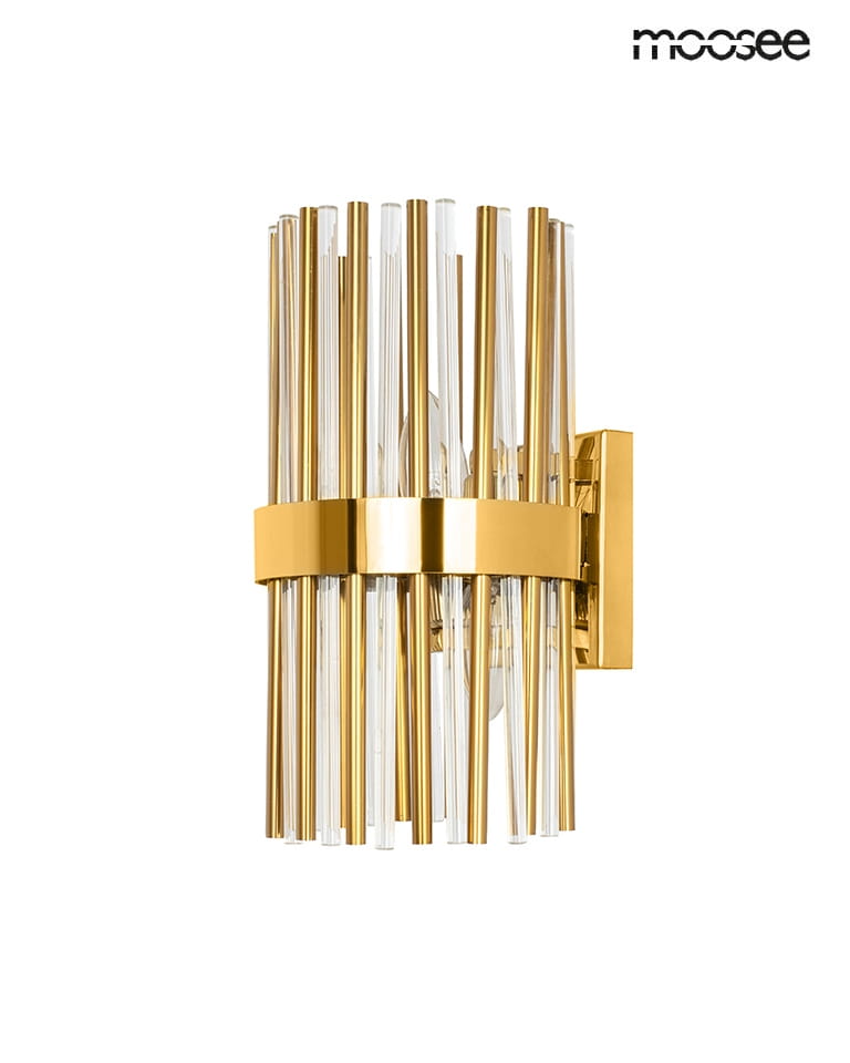 Oprawa ścienna o ponadczasowej formie została wykonana z trwałej stali w złotym kolorze, nadając pomieszczeniu subtelny, luksusowy akcent.