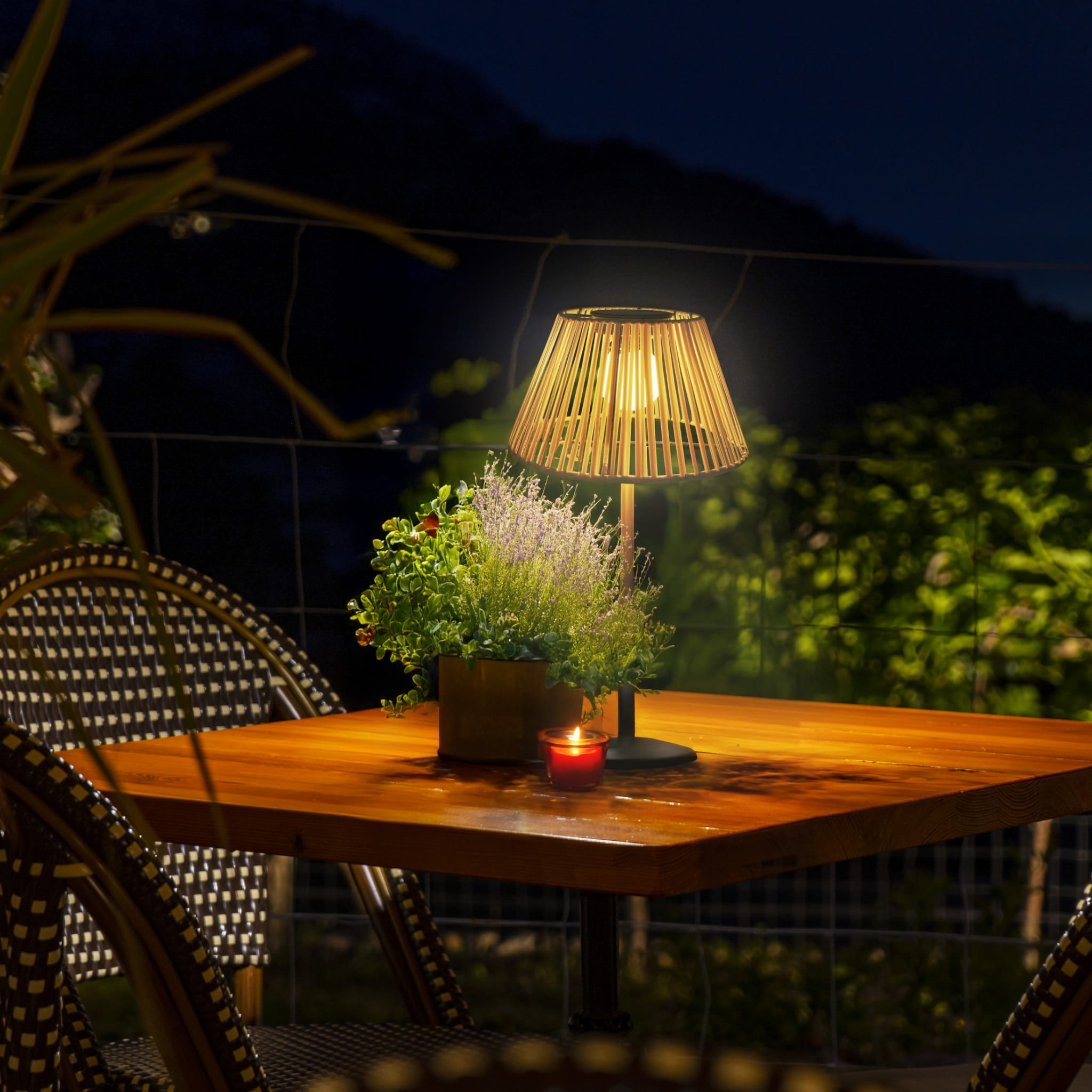 Wyposażona w klasyczną żarówkę LED emituje ciepłe, nastrojowe światło, które idealnie pasuje do wieczornego relaksu na świeżym powietrzu.