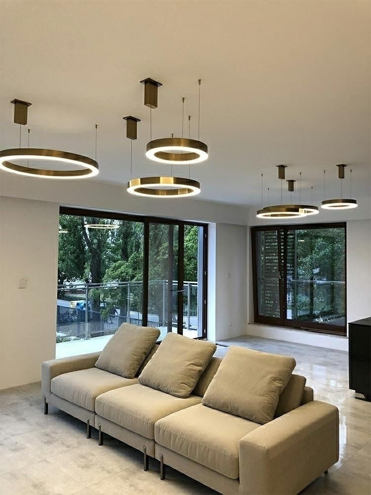 Dzięki imponującej średnicy 100 cm model Ring 100 świetnie sprawdzi się jako główne oświetlenie wnętrza lub designerski akcent nad stołem, wyspą czy w strefie wypoczynkowej.