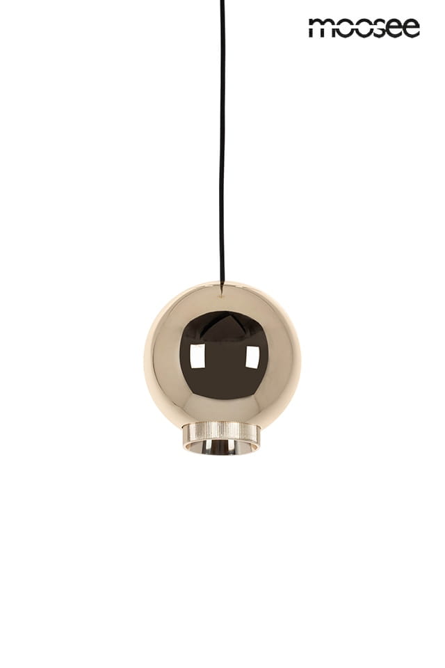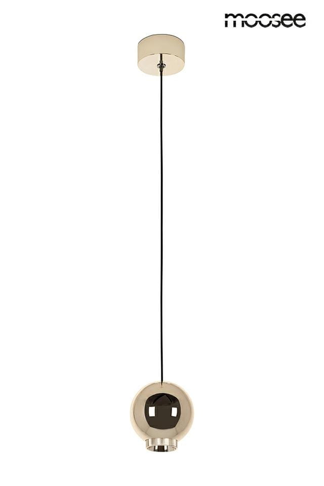 Lampa wisząca MOOSEE OJO to nowoczesna oprawa ze stali i szkła w błyszczącym, złotym wykończeniu.