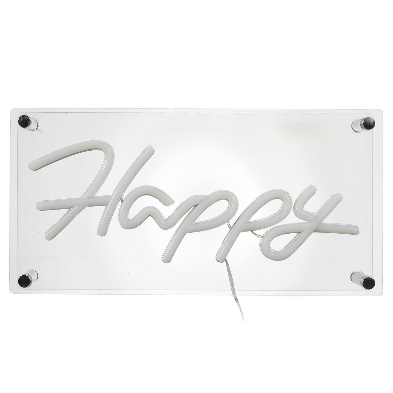 Ledowa lampa z napisem "Happy" to prawdziwy kunszt designu, który z pewnością przyciągnie uwagę.