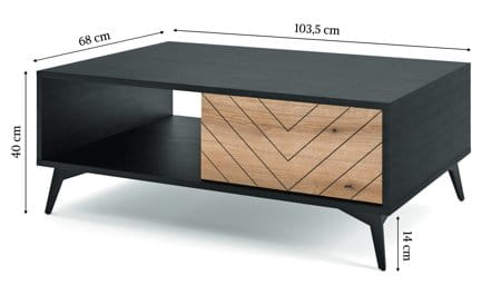 Wymiary 104x40 cm oraz praktyczna szuflada czynią tę ławę zarówno praktyczną, jak i estetyczną.