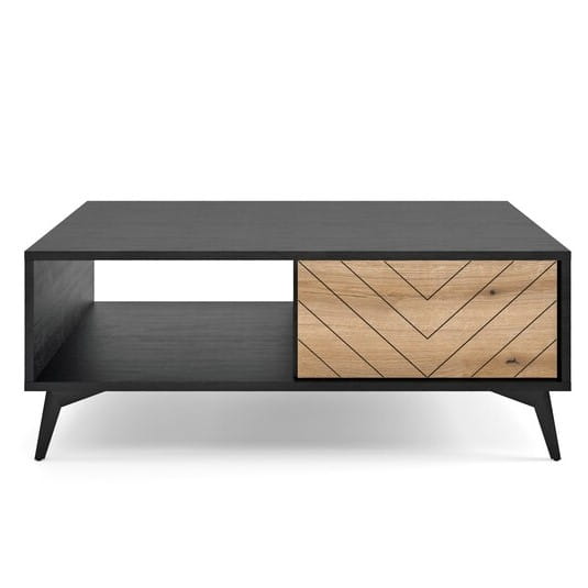 Seria mebli Diamond to harmonijne zestawienie czarnego korpusu z frontami w ciepłym odcieniu dębu.
