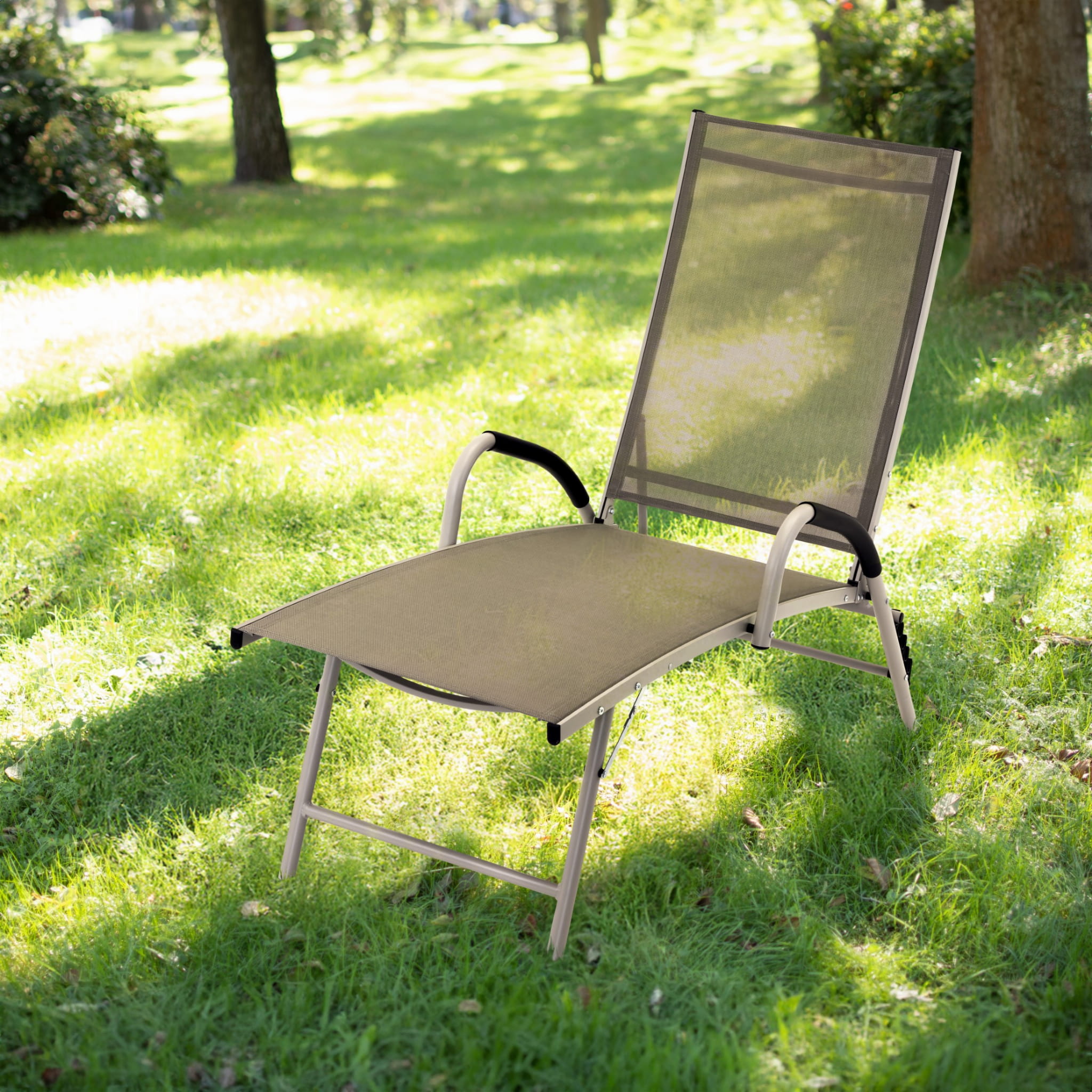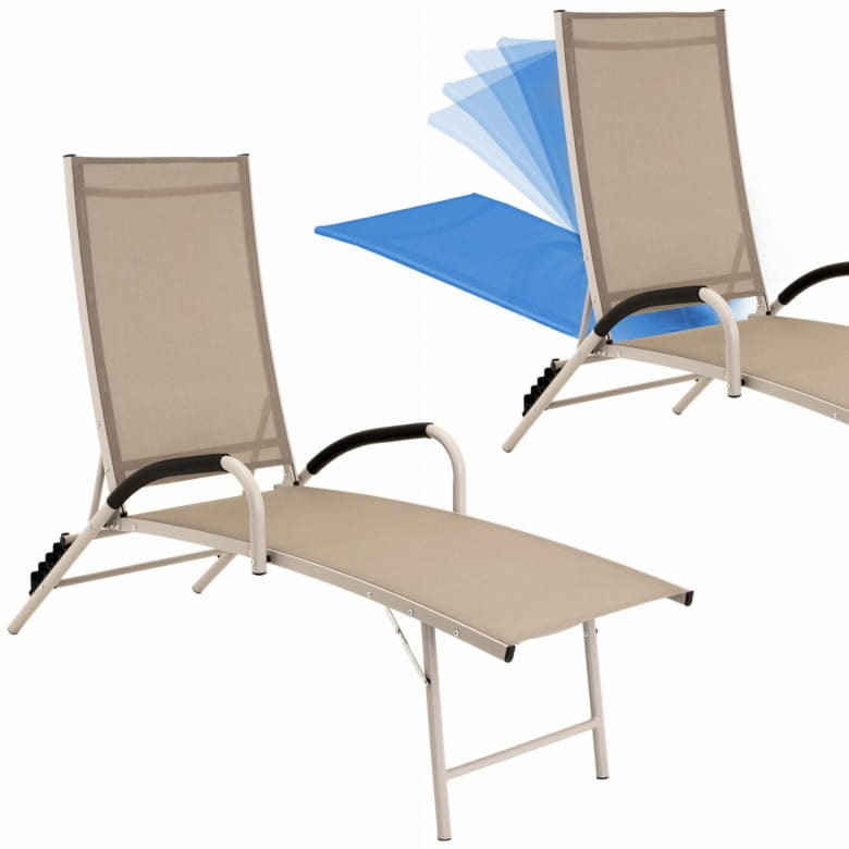 Leżak ogrodowy aluminiowy z regulacją oparcia, składany na płasko – leżanka do ogrodu i na plażę