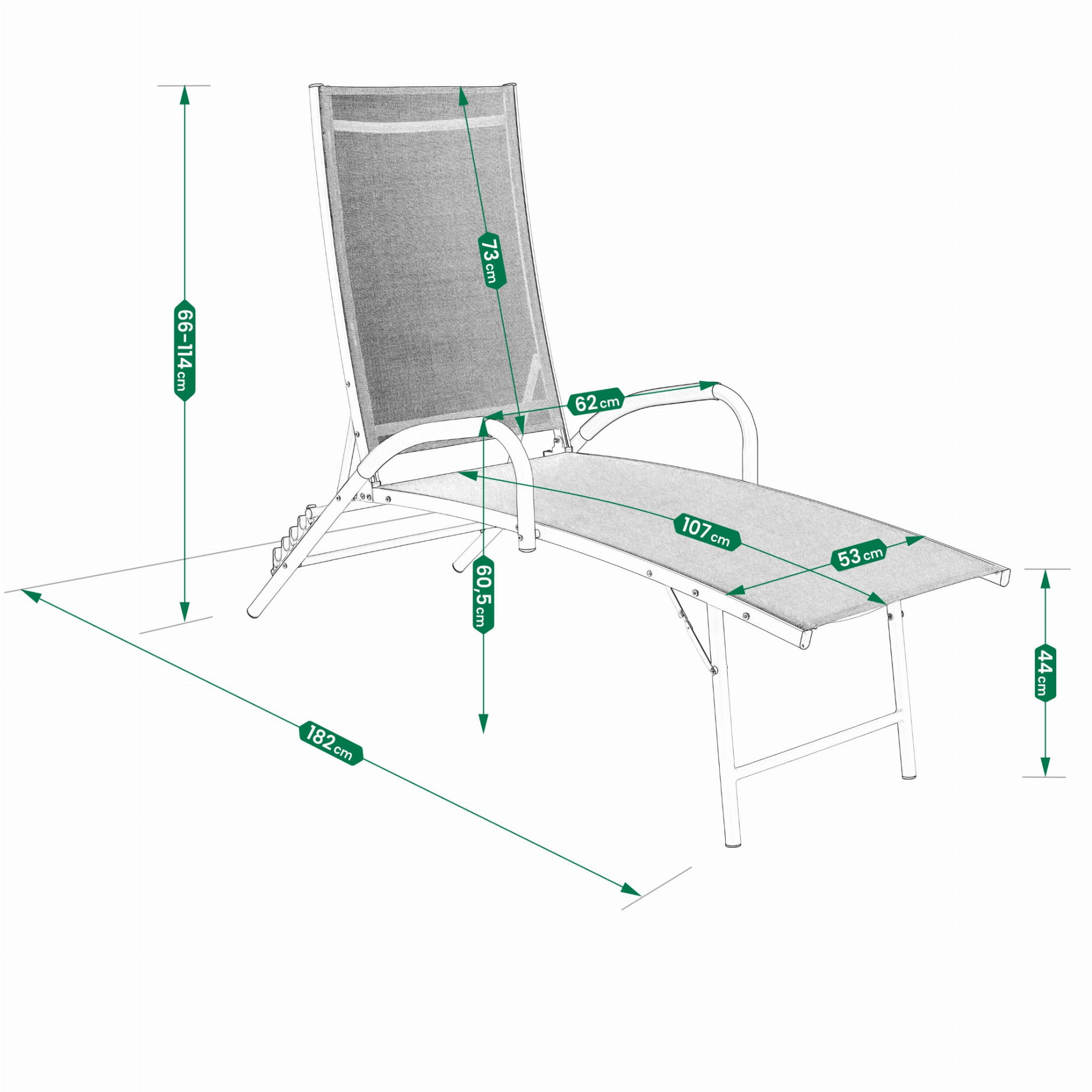 Regulowane oparcie i możliwość rozłożenia leżaka na płasko pozwalają dopasować pozycję do swoich potrzeb i odpoczywać dokładnie tak, jak lubisz.