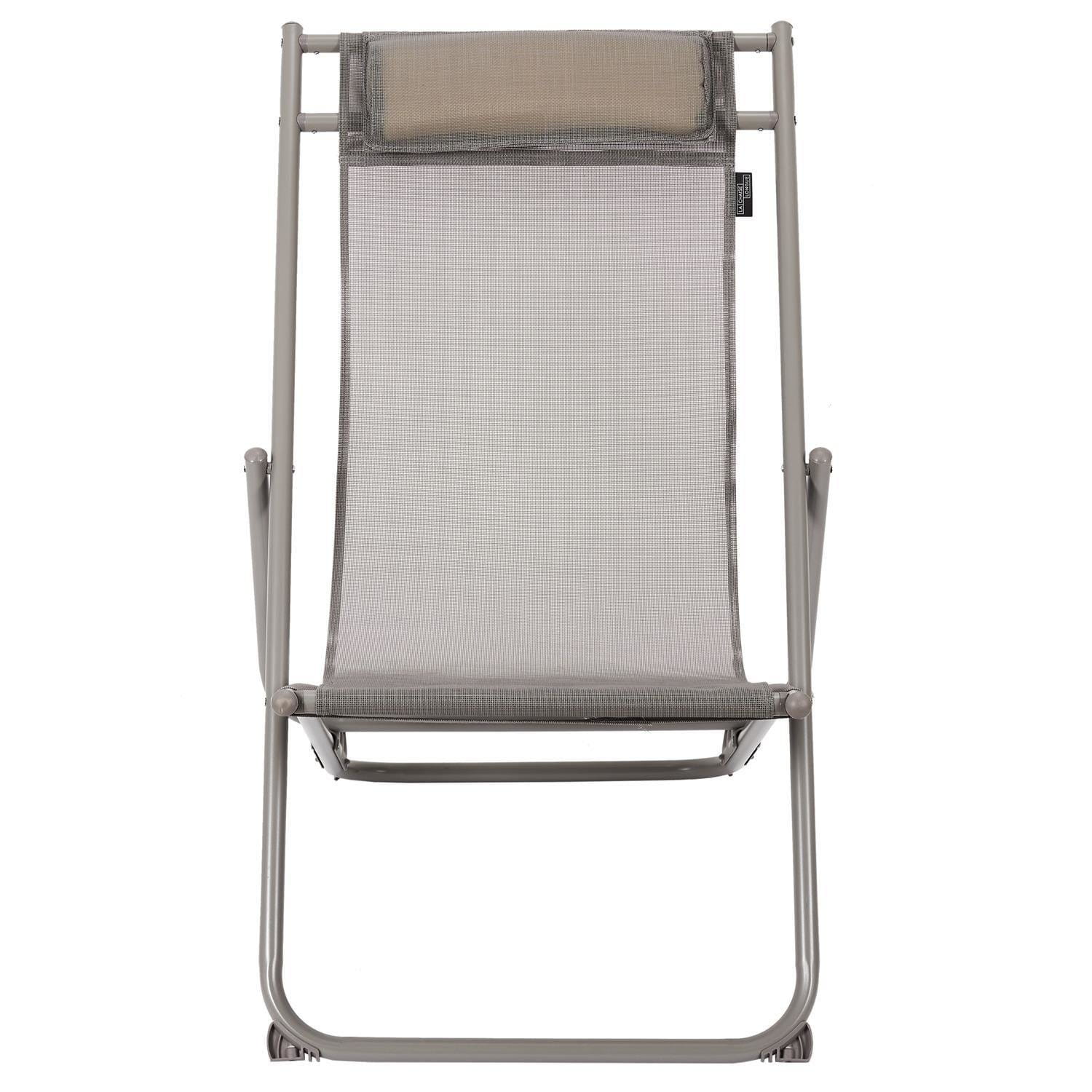 Leżak wyposażony został w miękką poduszkę pod głowę, która zwiększa komfort odpoczynku.