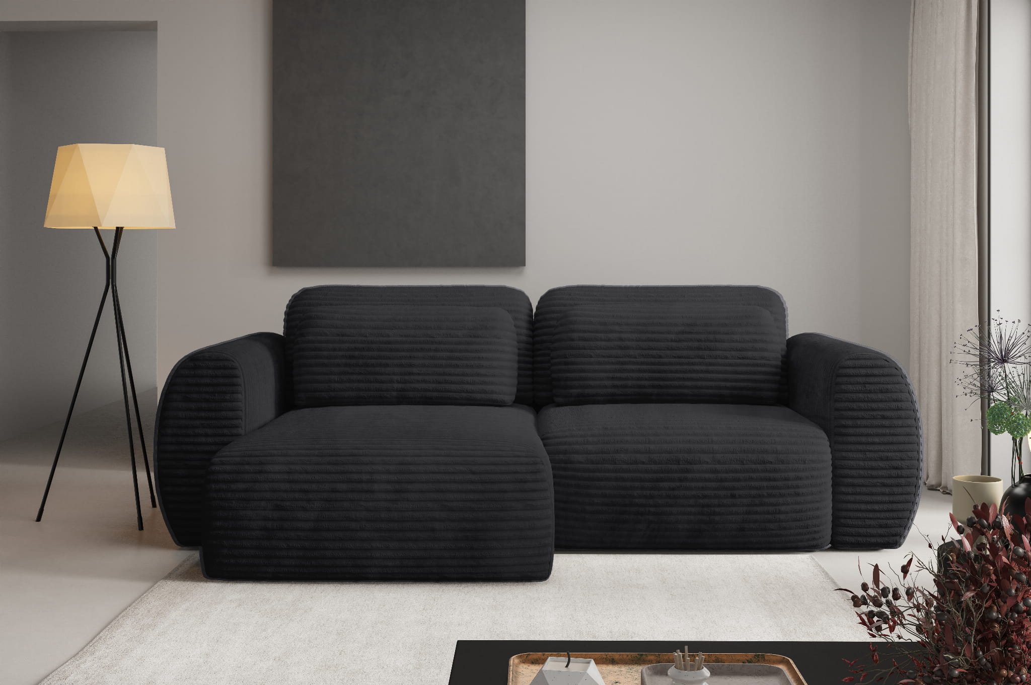 Narożnik czarny 270 cm, do salonu Ambience 20 Glow