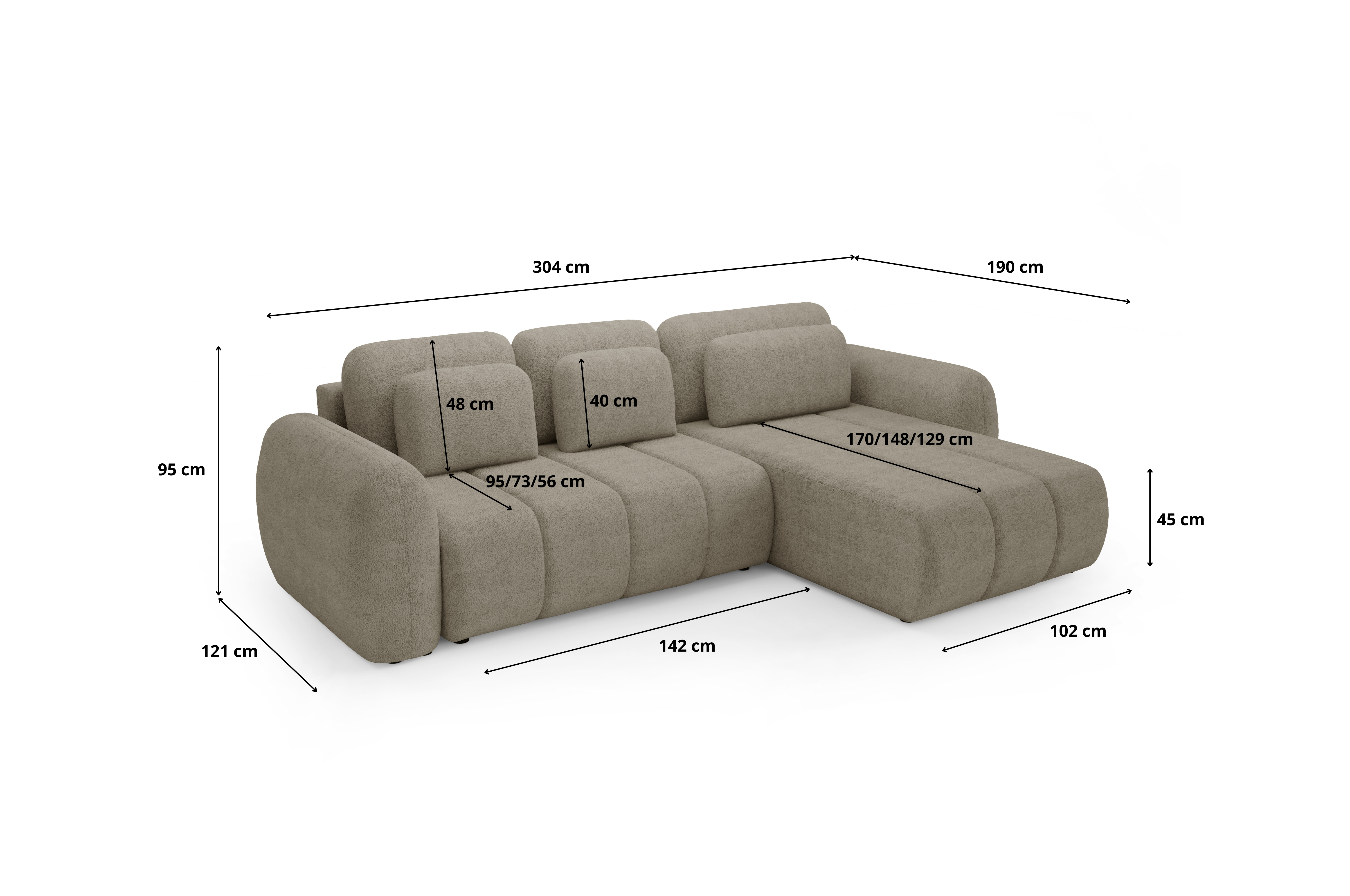 Narożnik Arletta o długości 304 cm to wygodna i funkcjonalna propozycja do nowoczesnego salonu.