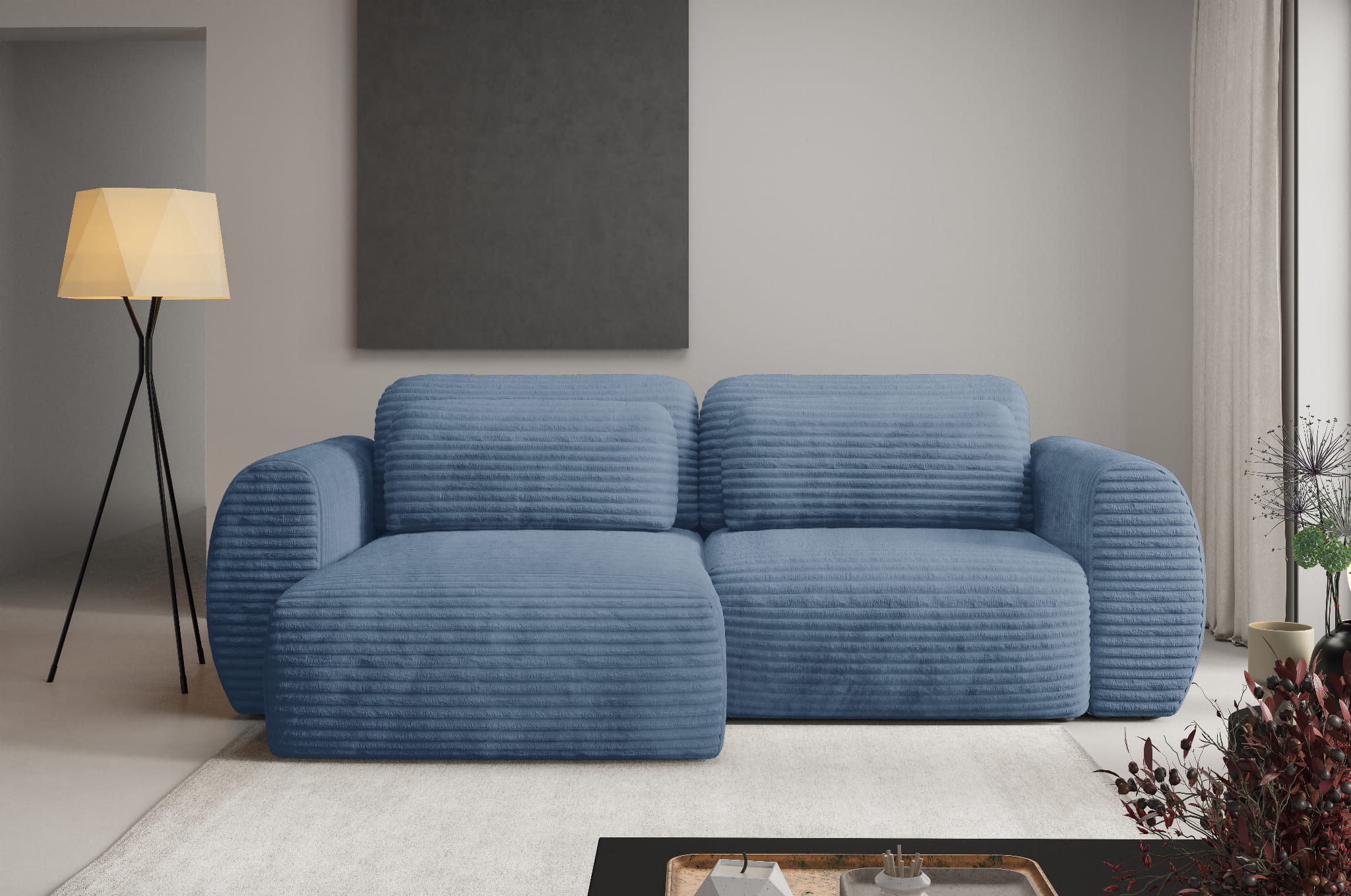 Narożnik niebieski 270 cm, do salonu Ambience 13 Glow
