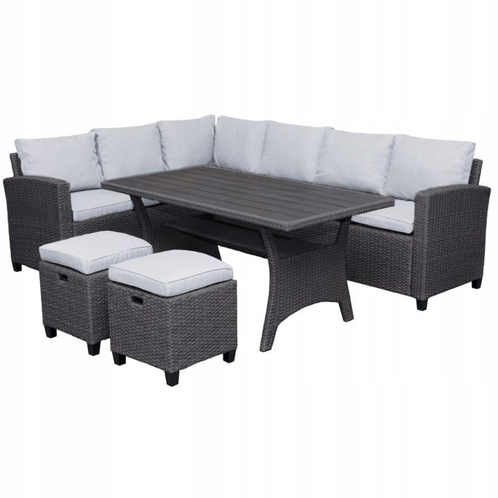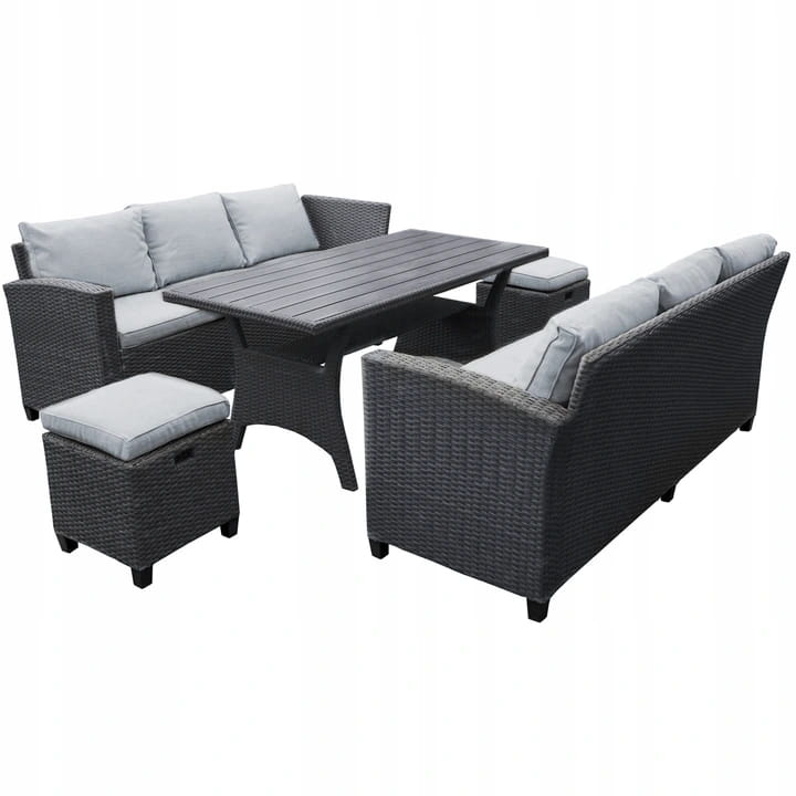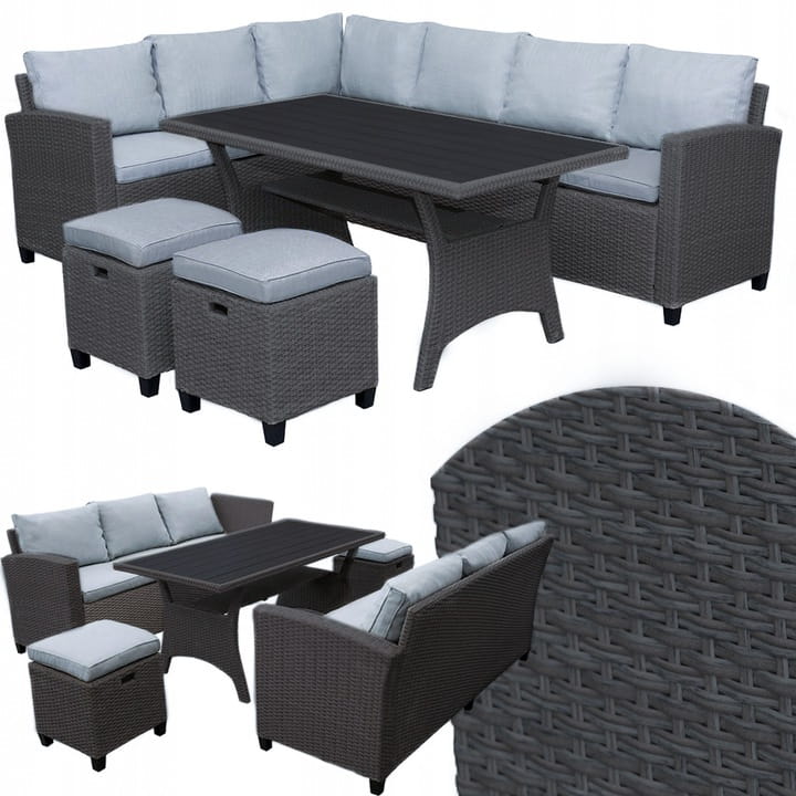 Narożnik ogrodowy grafitowy z technorattanu na taras to funkcjonalny i estetyczny wybór, który sprawdzi się w różnych wnętrzach. Wyróżnia się solidnym wykonaniem i ponadczasowym charakterem. Będzie idealnym dodatkiem do Twojej przestrzeni.