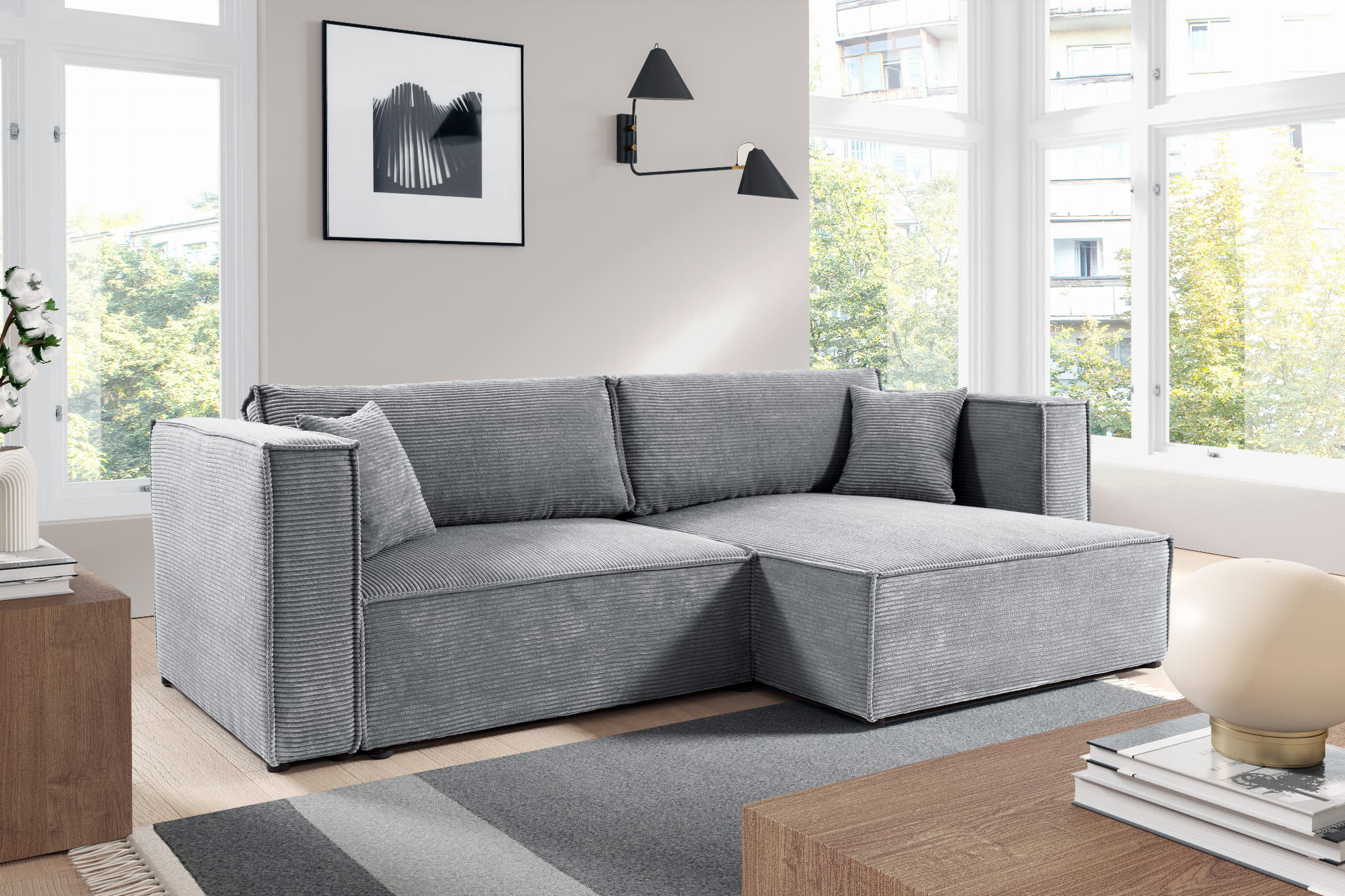 - Funkcja spania – szybka zmiana narożnika w miejsce do odpoczynku