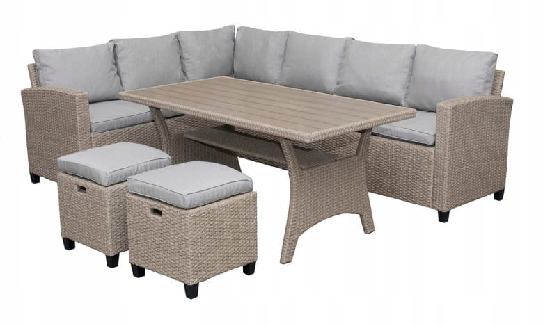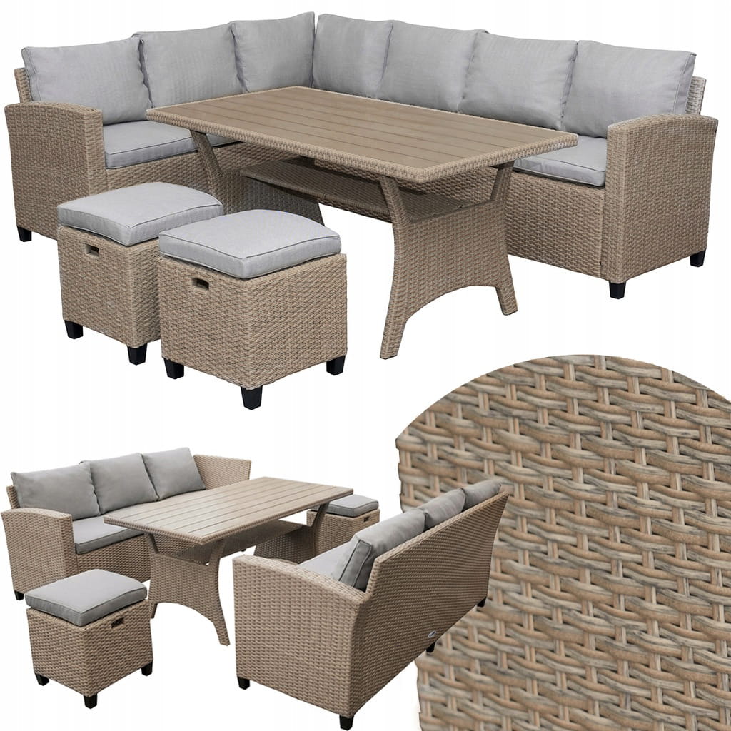 Zestaw mebli ogrodowych Venezia z technorattanu, modułowy narożnik, beżowy kolor