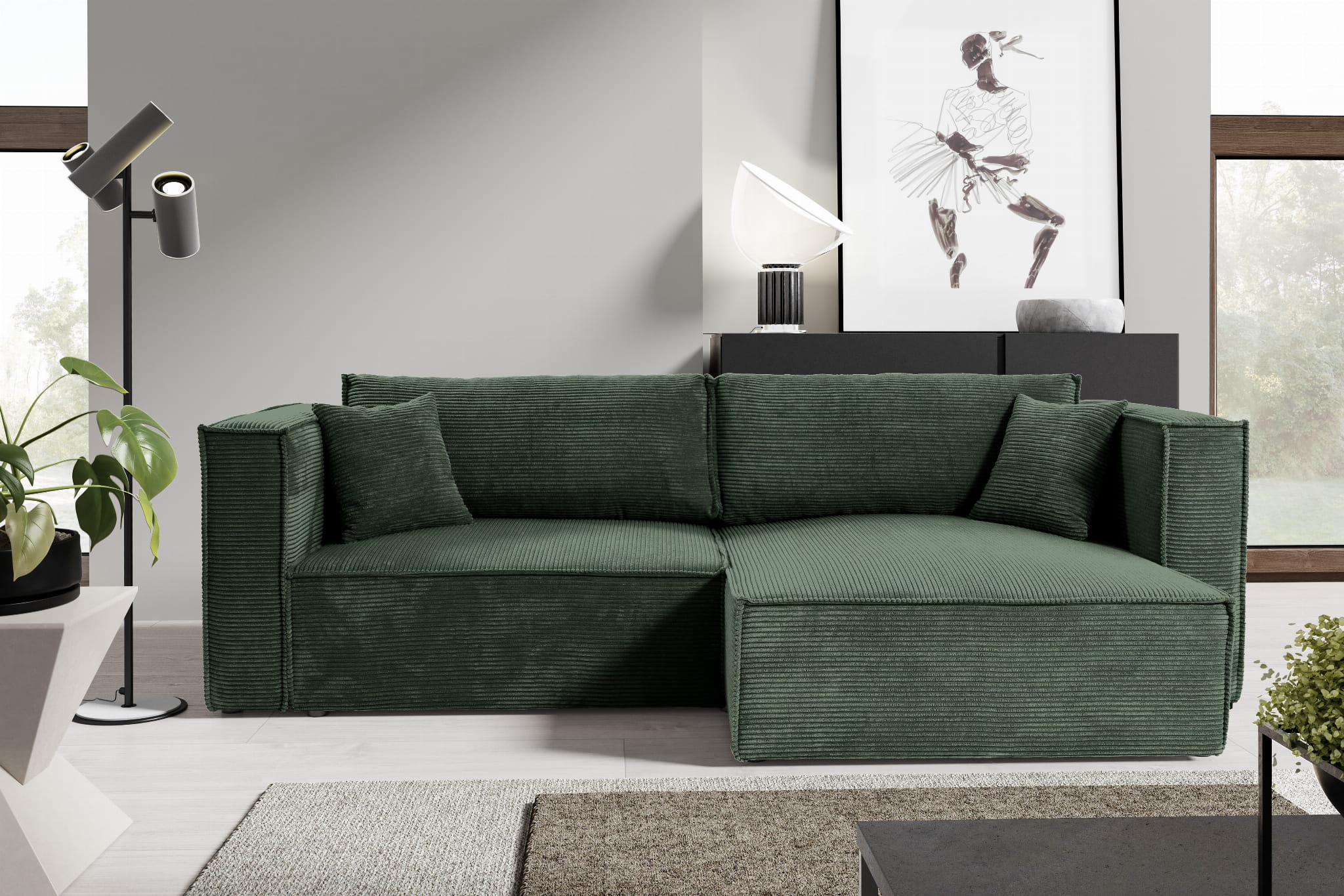 Narożnik zielony butelkowy 245 cm, do salonu Poso 14 Elvis