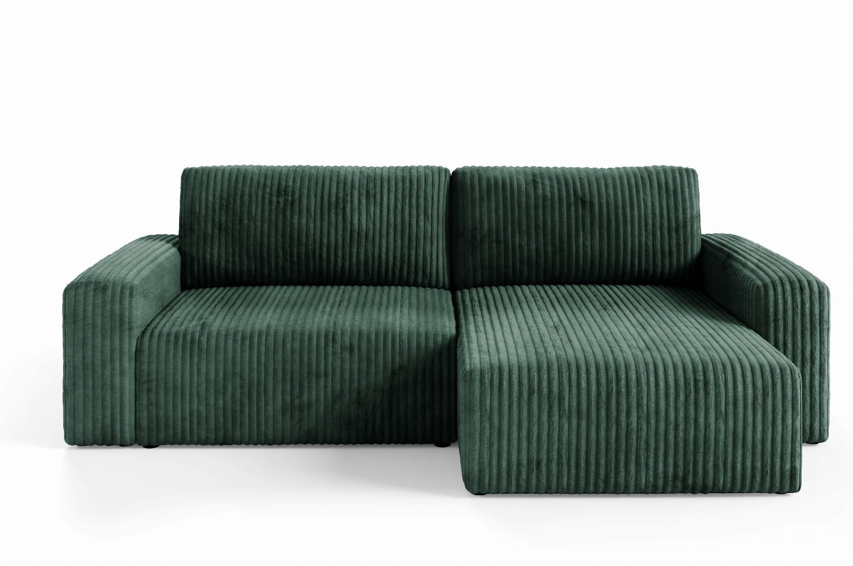 Narożnik zielony butelkowy 252 cm do salonu z funkcją spania i pojemnikiem