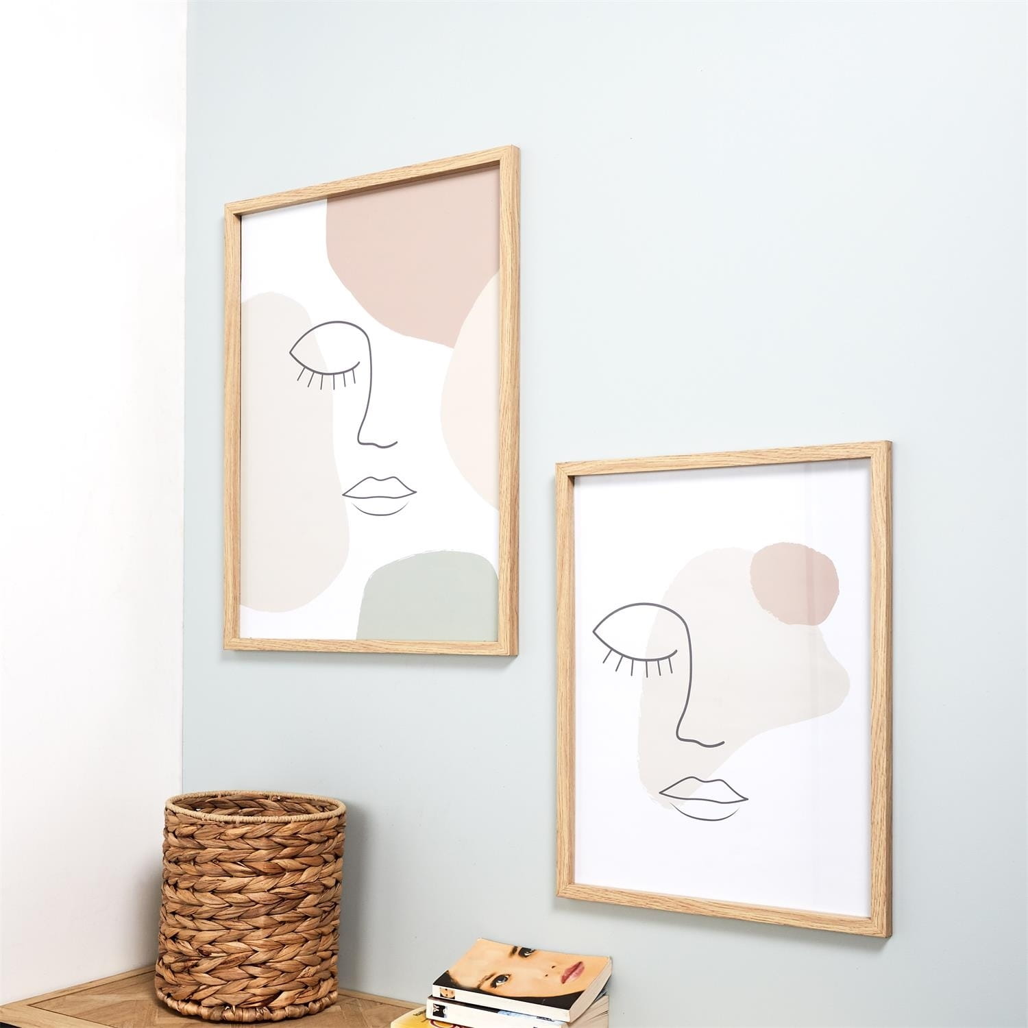 Obraz o pastelowych plamach i konturze twarzy wpisze się we wnętrza nowoczesne, boho lub skandi.