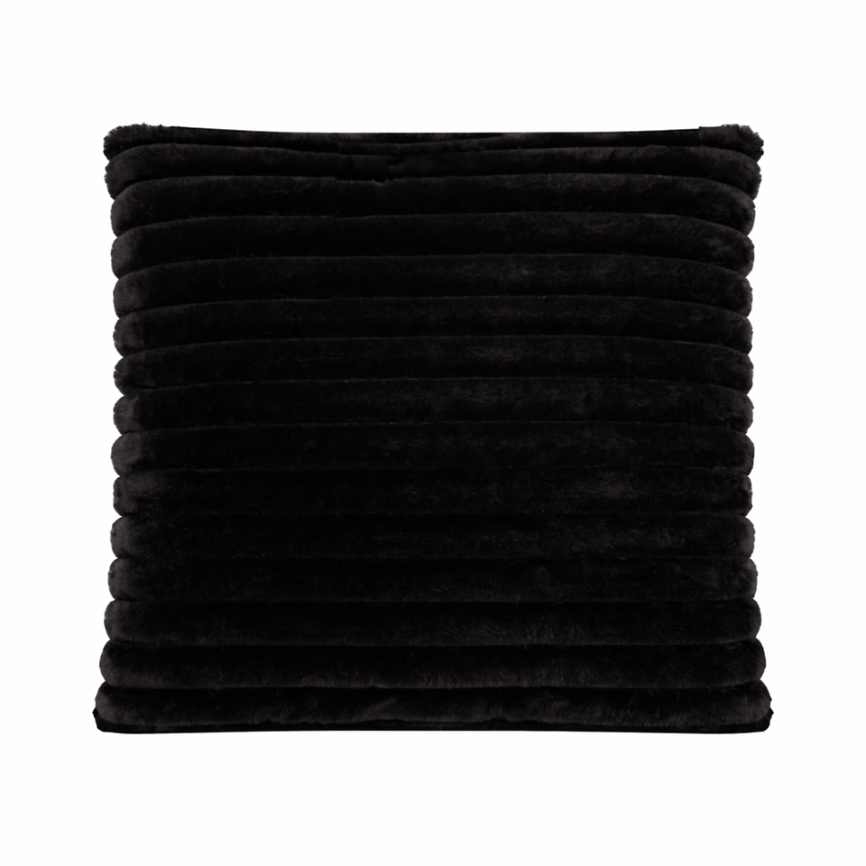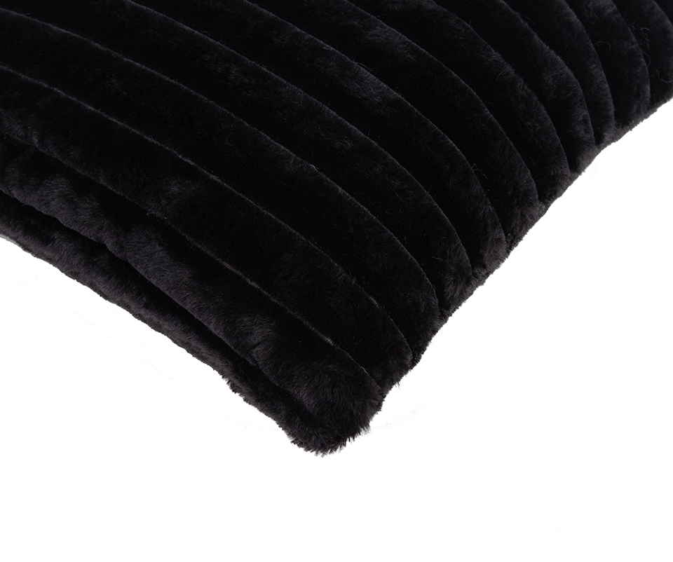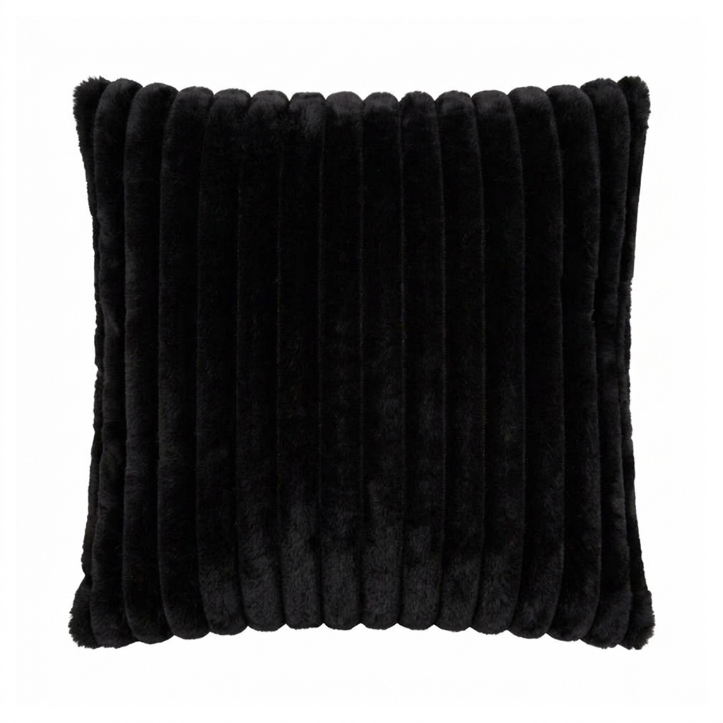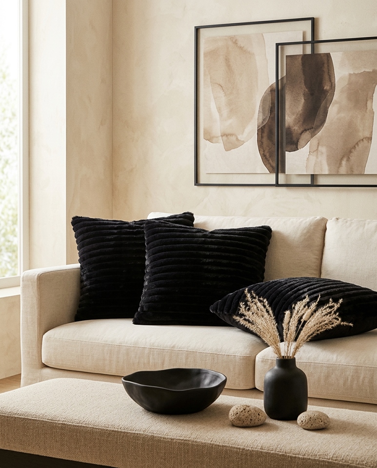 Czarna poduszka dekoracyjna świetnie komponuje się z jasnymi tkaninami, drewnem, beżami, szarościami oraz mocniejszymi kontrastami. Można ułożyć ją na sofie, fotelu lub łóżku, aby dodać przestrzeni przytulności i eleganckiego wykończenia.