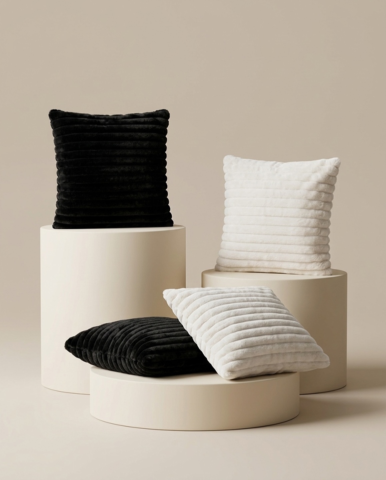 Poduszka dekoracyjna SHP LINE w czarnym kolorze to stylowy dodatek, który wprowadza do wnętrza elegancję, głębię i nowoczesny charakter. Doskonale uzupełnia aranżacje salonu, sypialni lub strefy relaksu, stając się subtelnym, a zarazem wyrazistym akcentem dekoracyjnym.