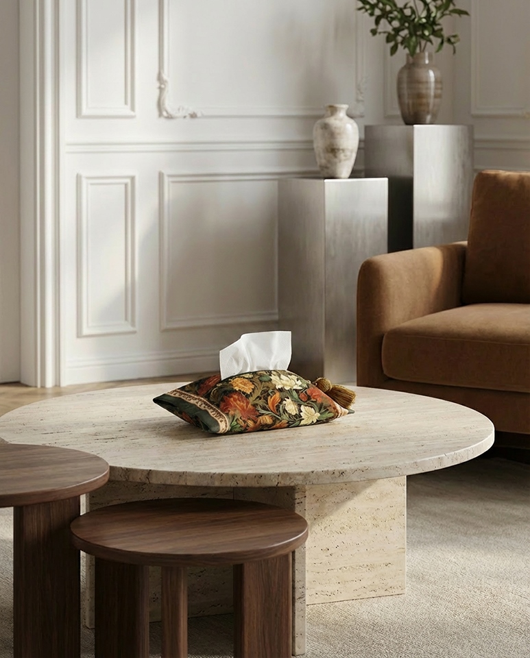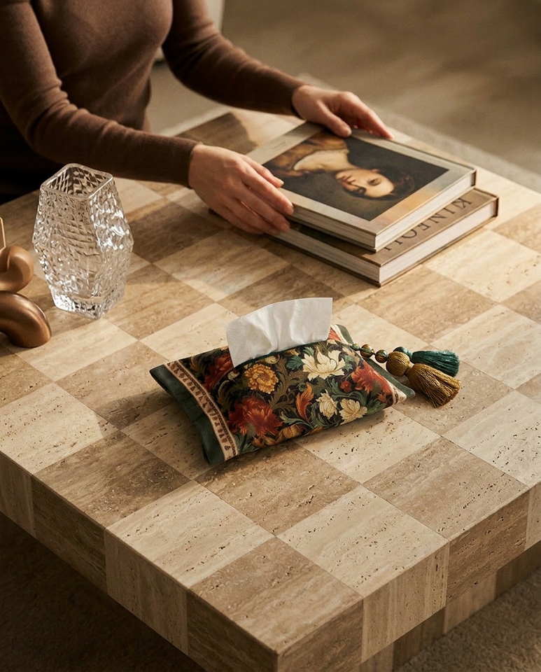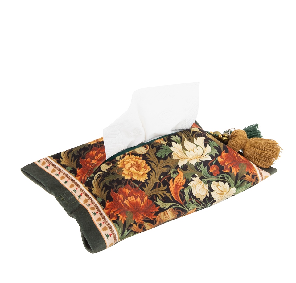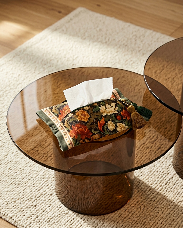 Ozdobny chwost i dekoracyjne detale podkreślają unikalny styl pojemnika, sprawiając, że zwykłe chusteczki stają się częścią dopracowanej aranżacji.