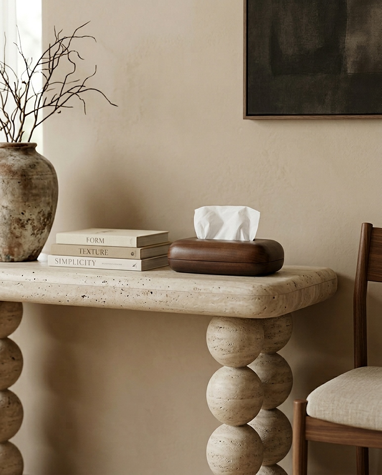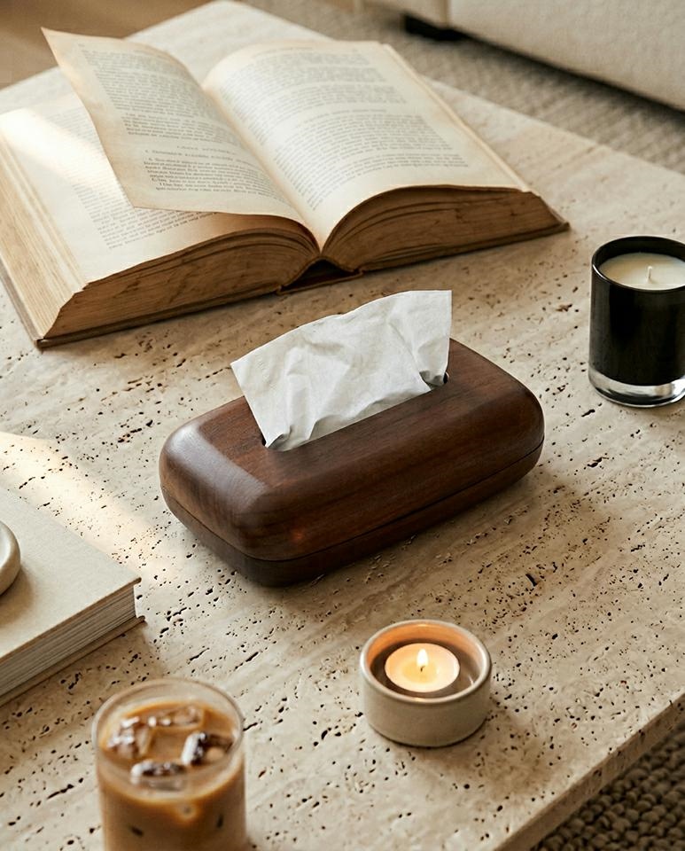 Zamykana konstrukcja pozwala estetycznie ukryć opakowanie chusteczek, a jednocześnie zapewnia wygodny i szybki dostęp do zawartości na co dzień.
