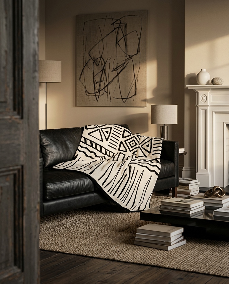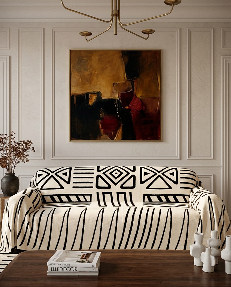 To prosty sposób na odświeżenie wnętrza bez wymiany mebli — wystarczy rozłożyć pokrowiec, aby nadać sofie nowy styl.