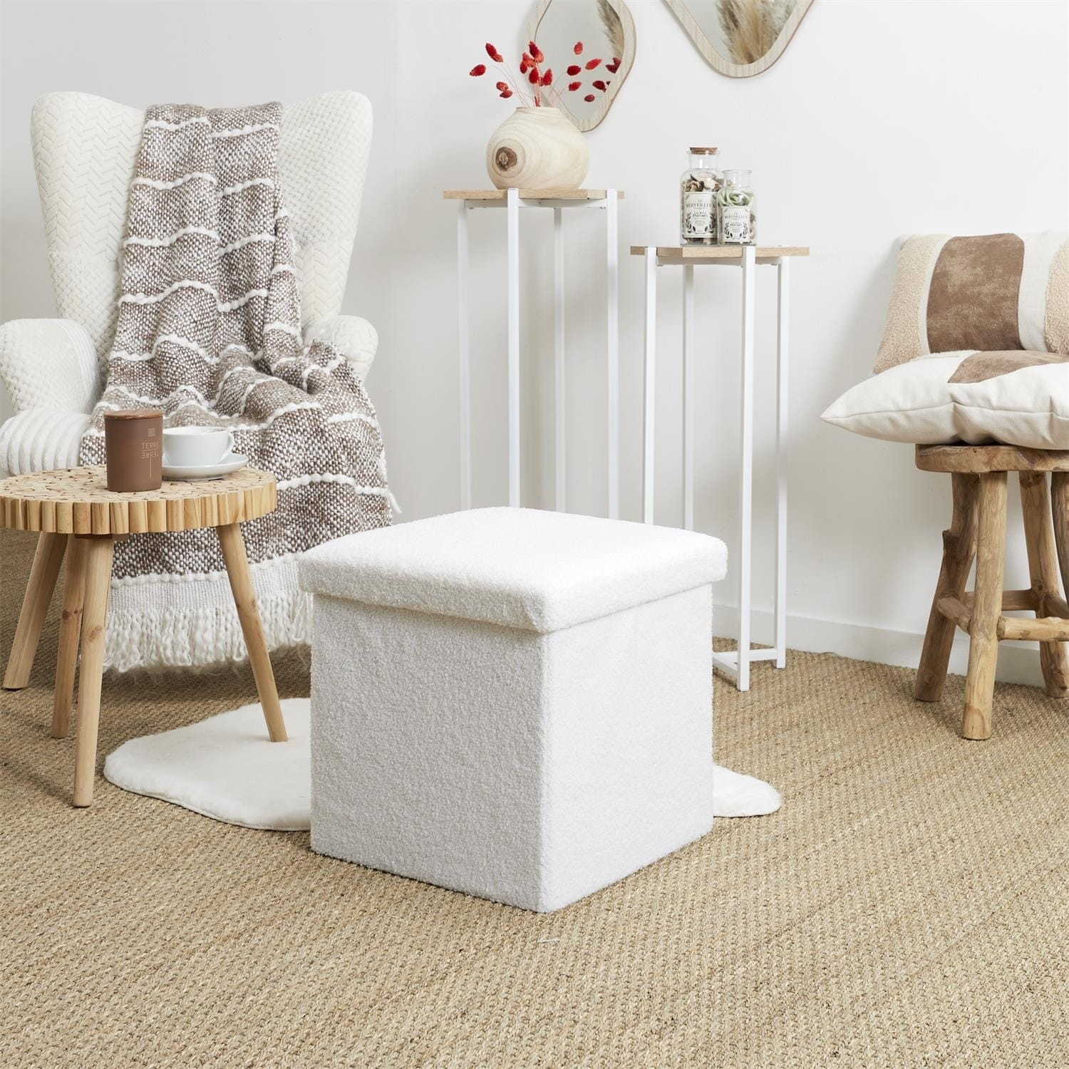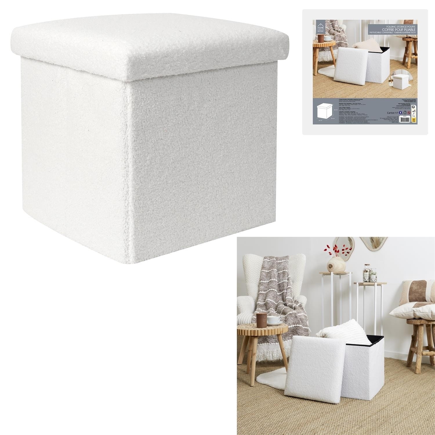 Składana pufa Intesi z tkaniny boucle