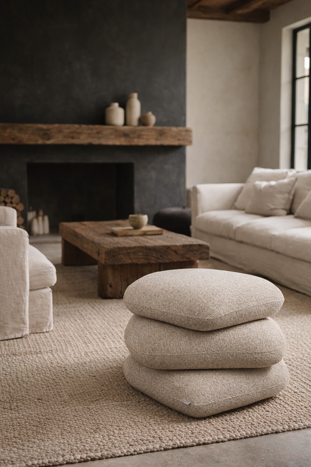Pufa beżowa w kształcie kamieni, do salonu Stones