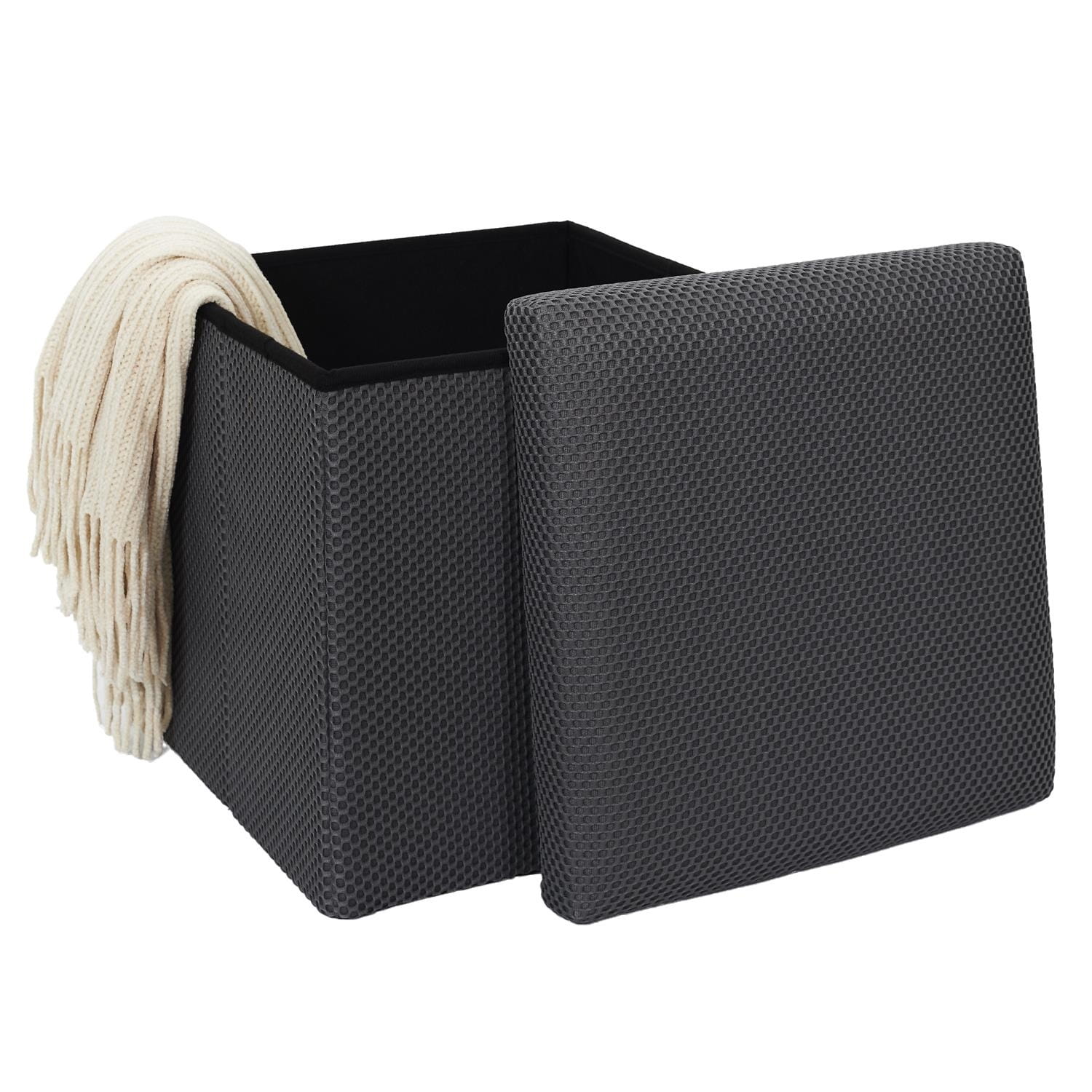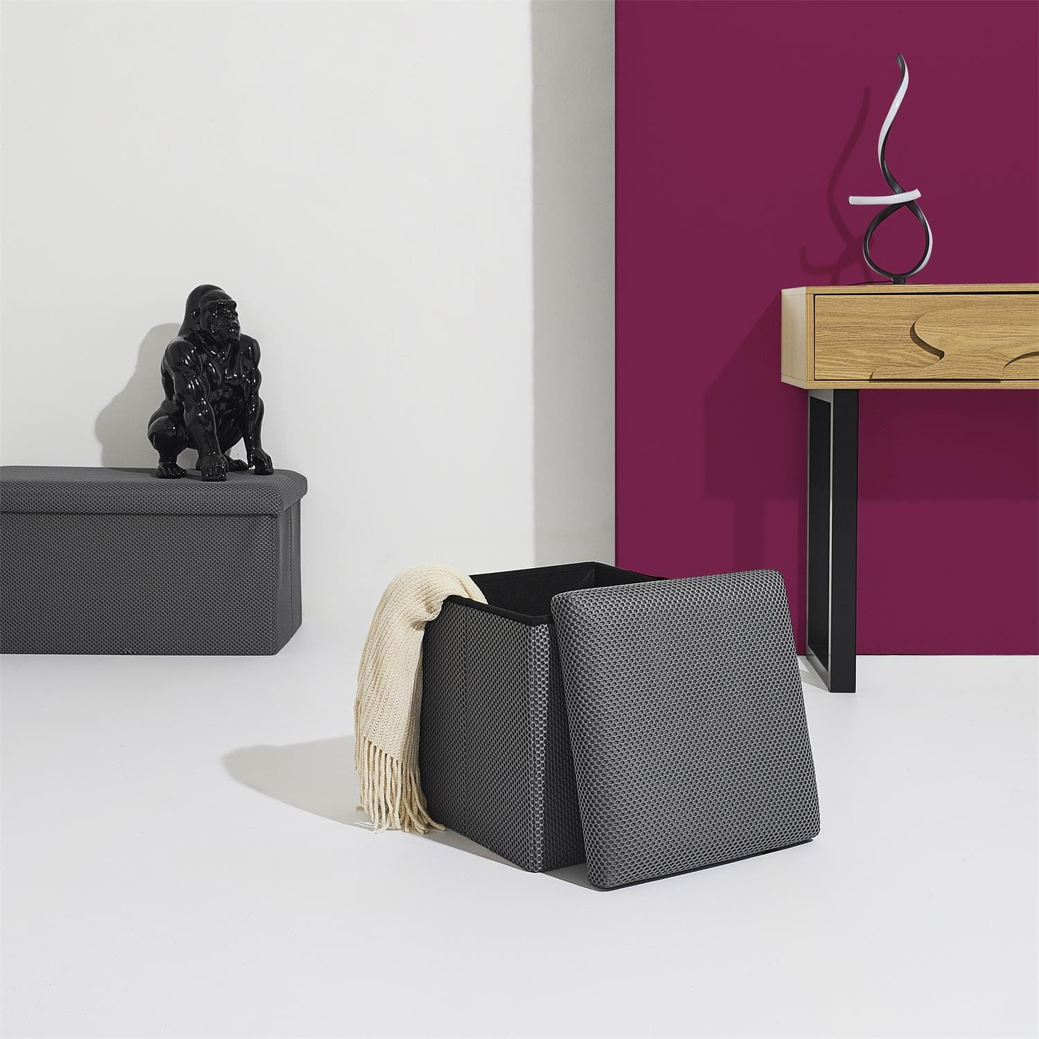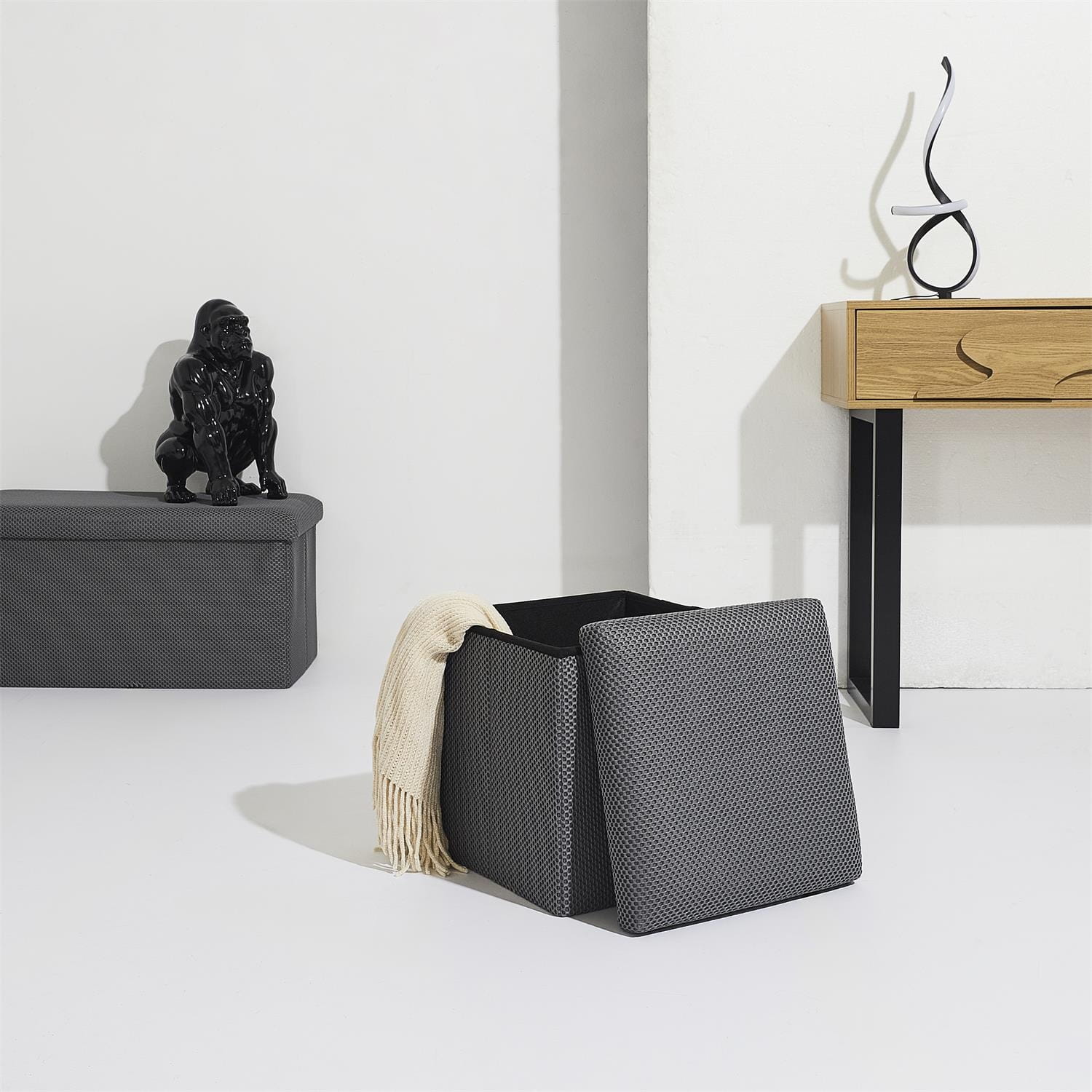 Składana pufa szara ze schowkiem – trójwymiarowa tkanina / MDF