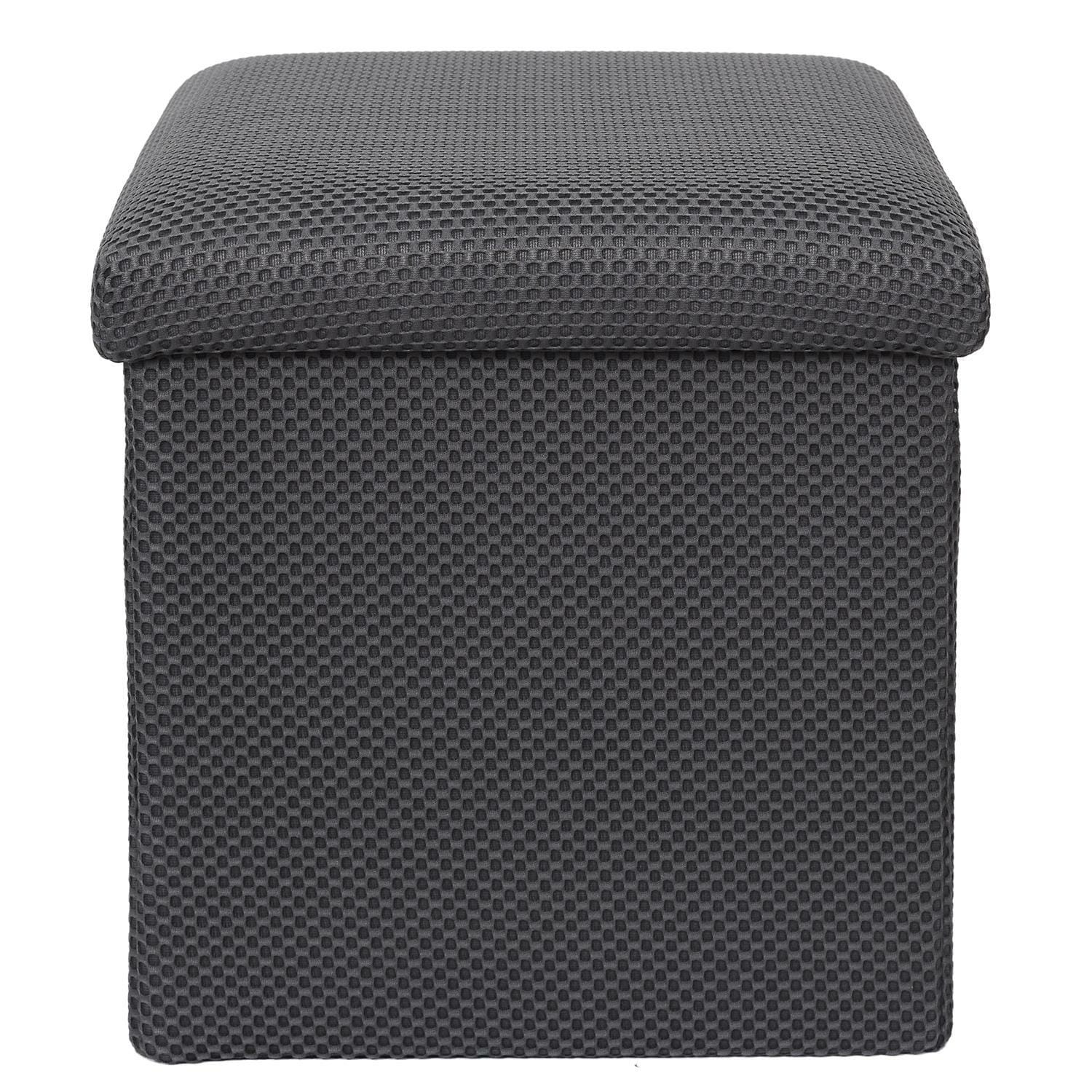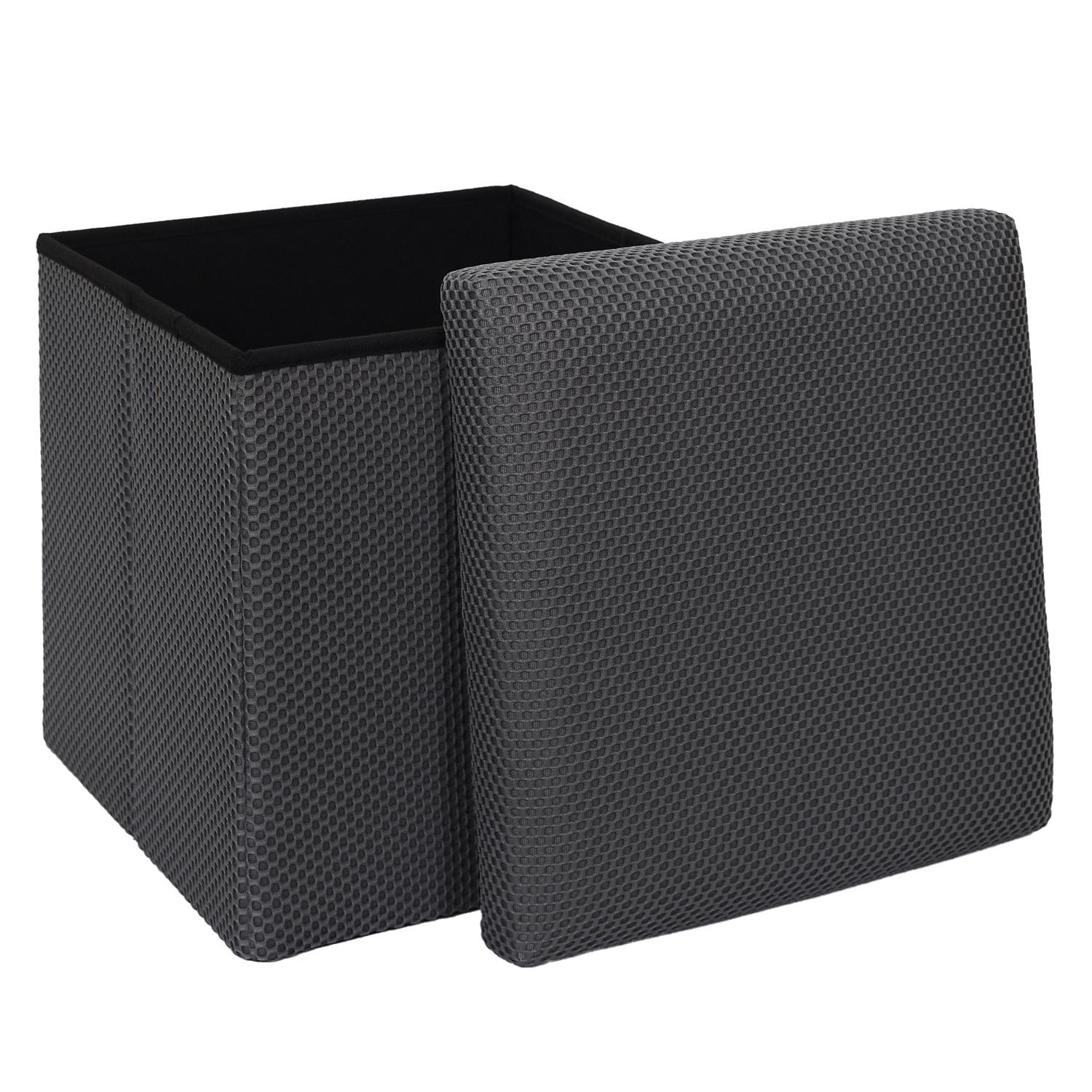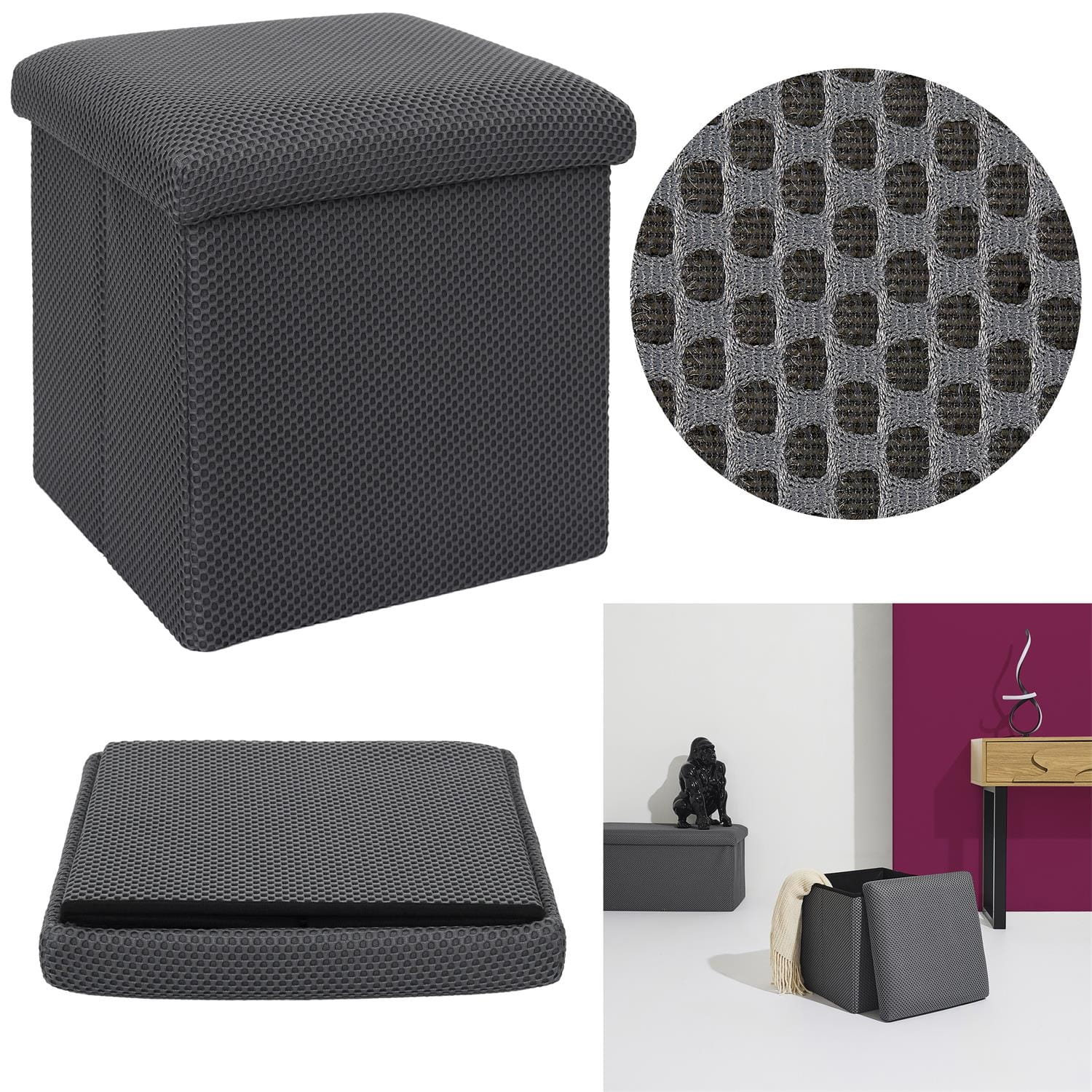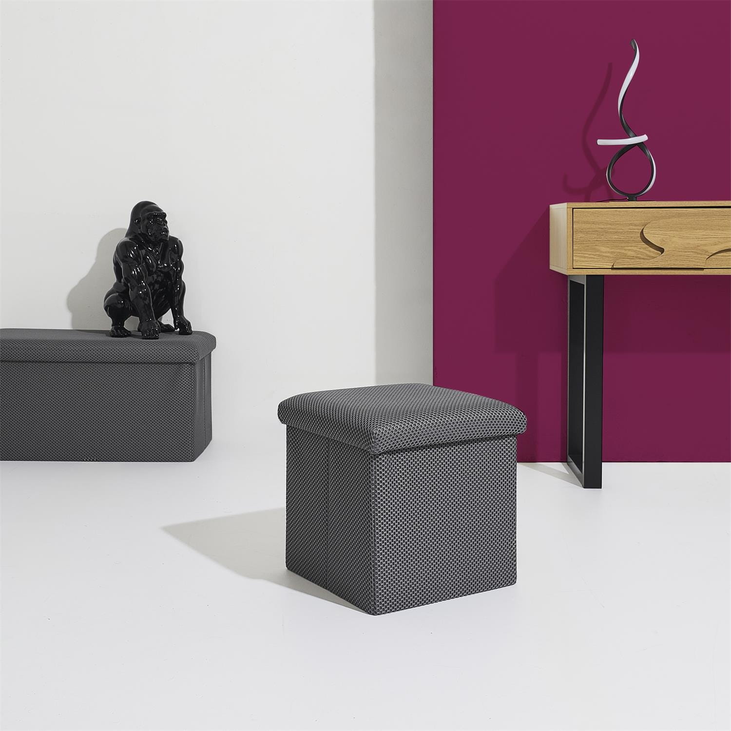 Składana pufa szara ze schowkiem – trójwymiarowa tkanina / MDF