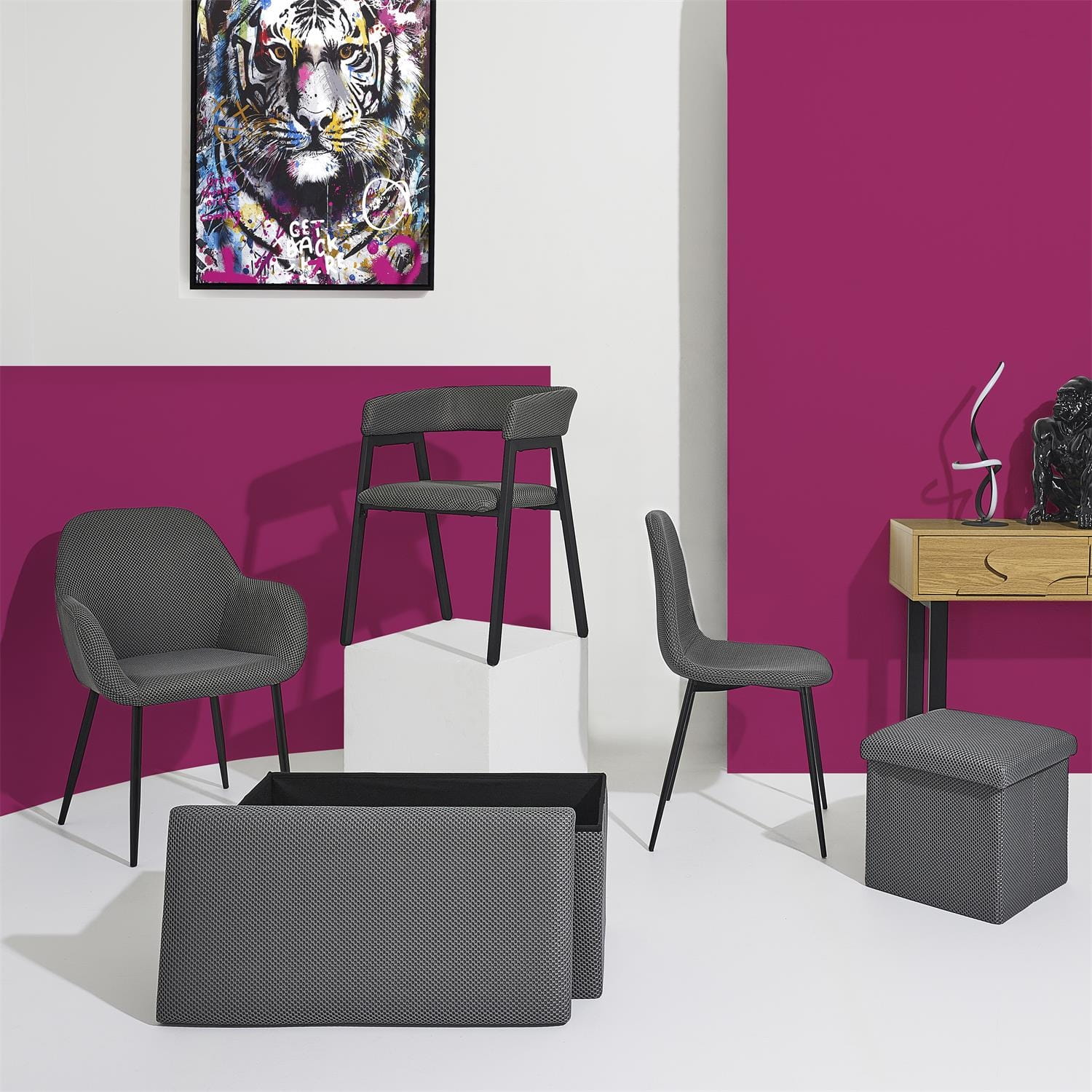 Obicie z przyjemnej w dotyku, trójwymiarowej tkaniny (100% poliester) nadaje pufie nowoczesny, dekoracyjny charakter.