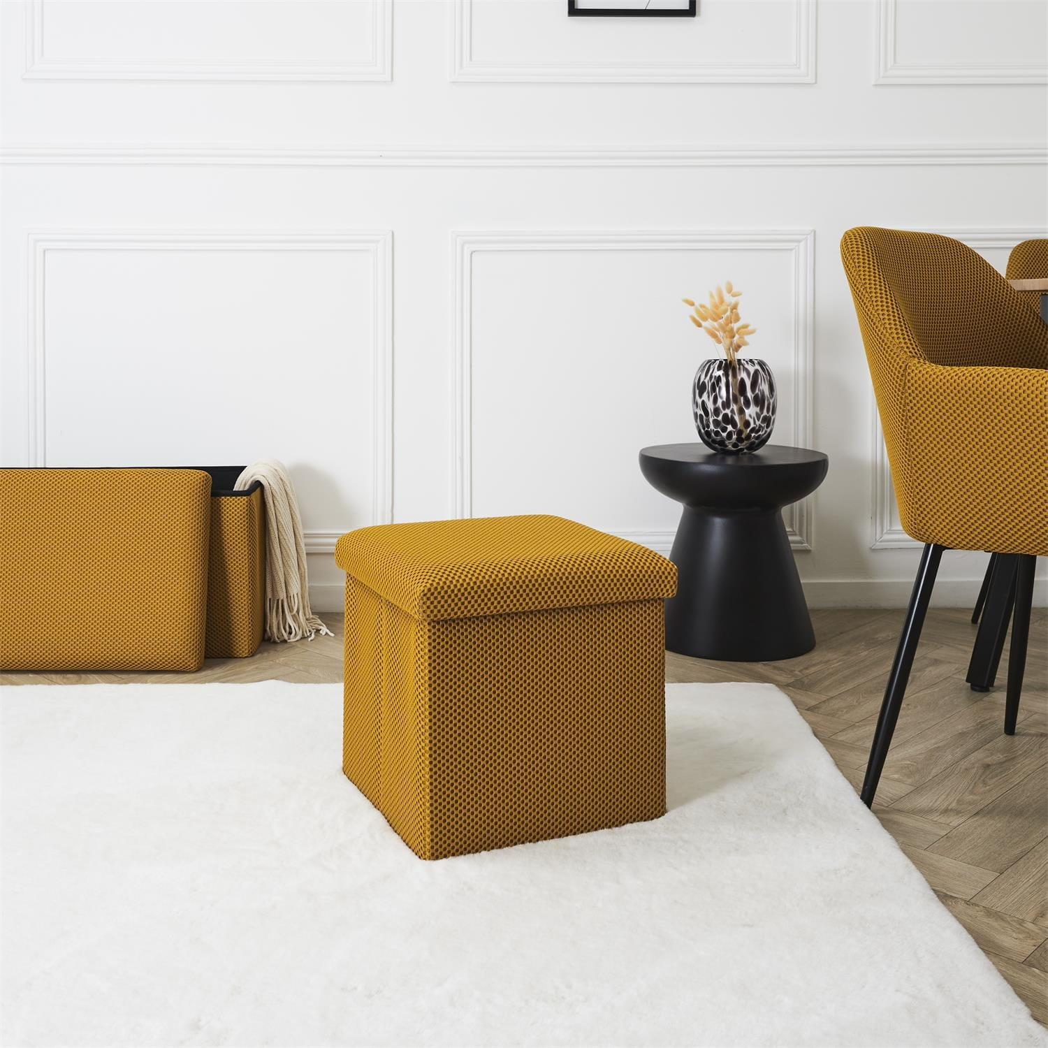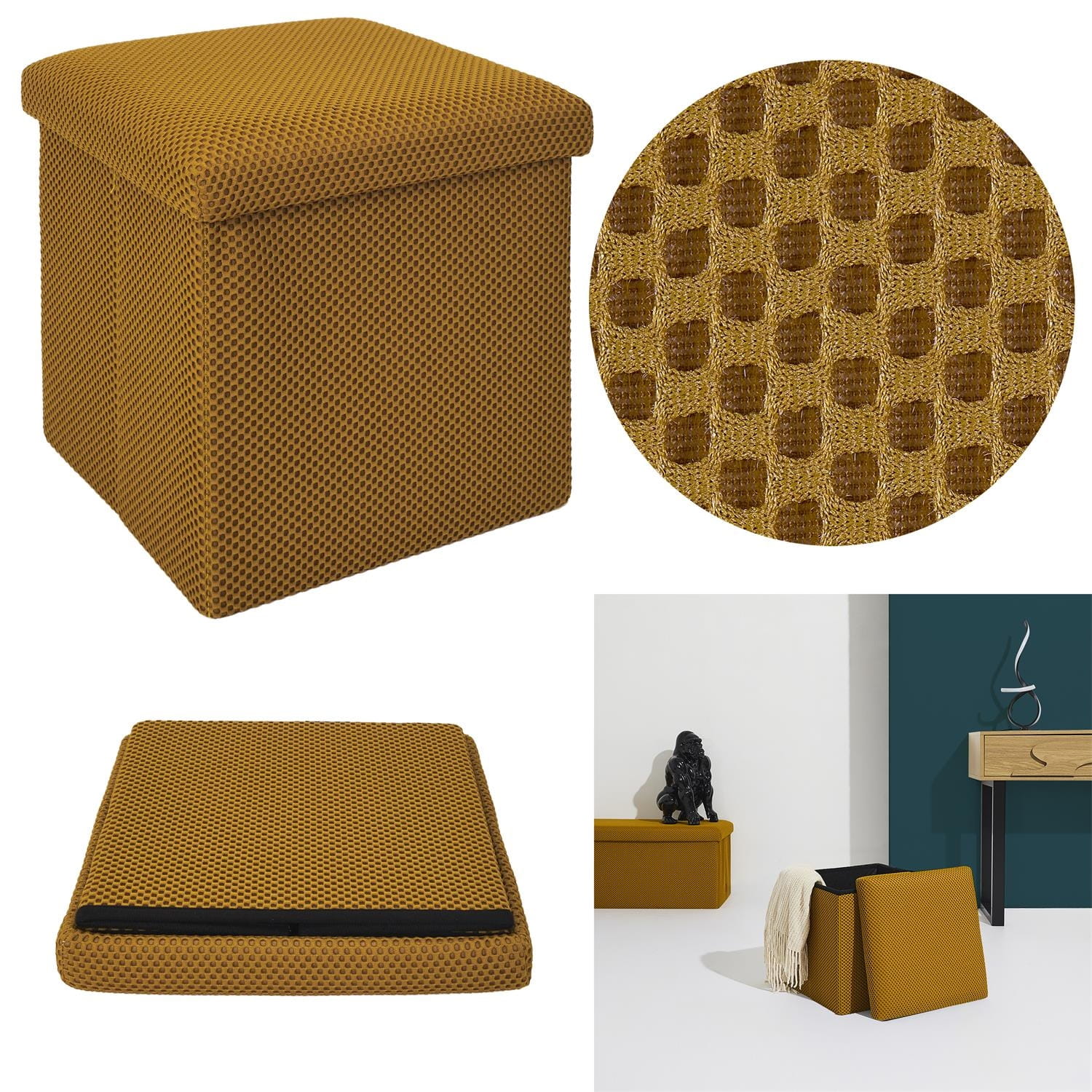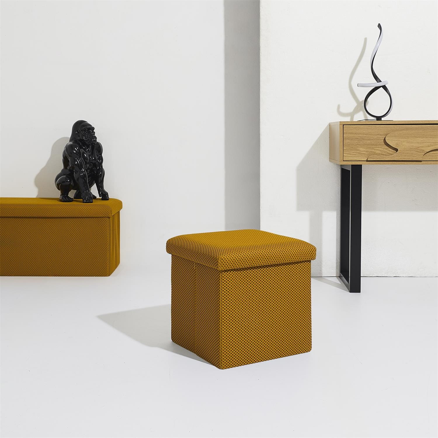 Składana pufa żółta ze schowkiem – trójwymiarowa tkanina / MDF
