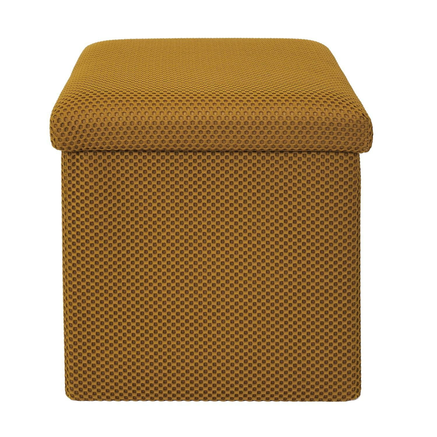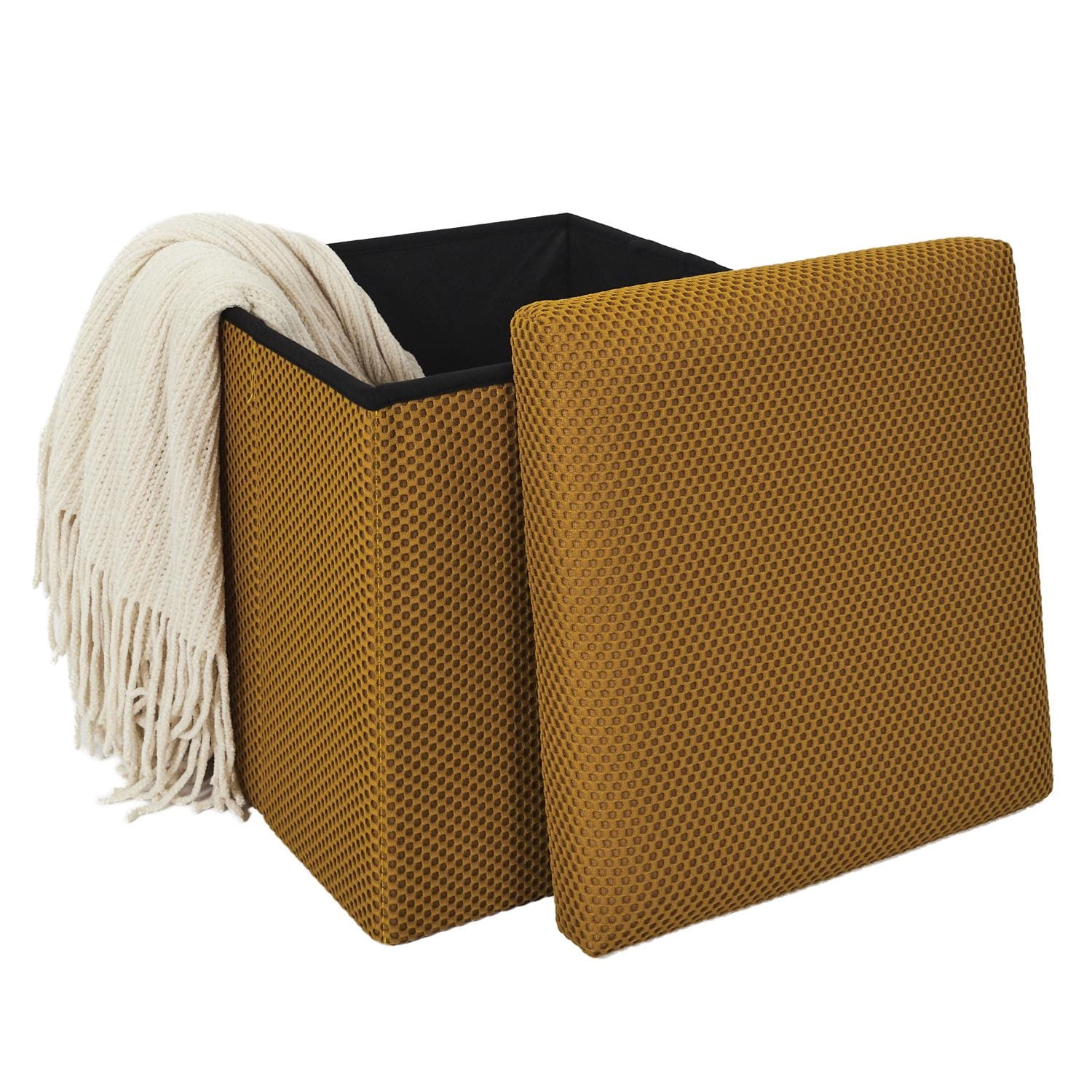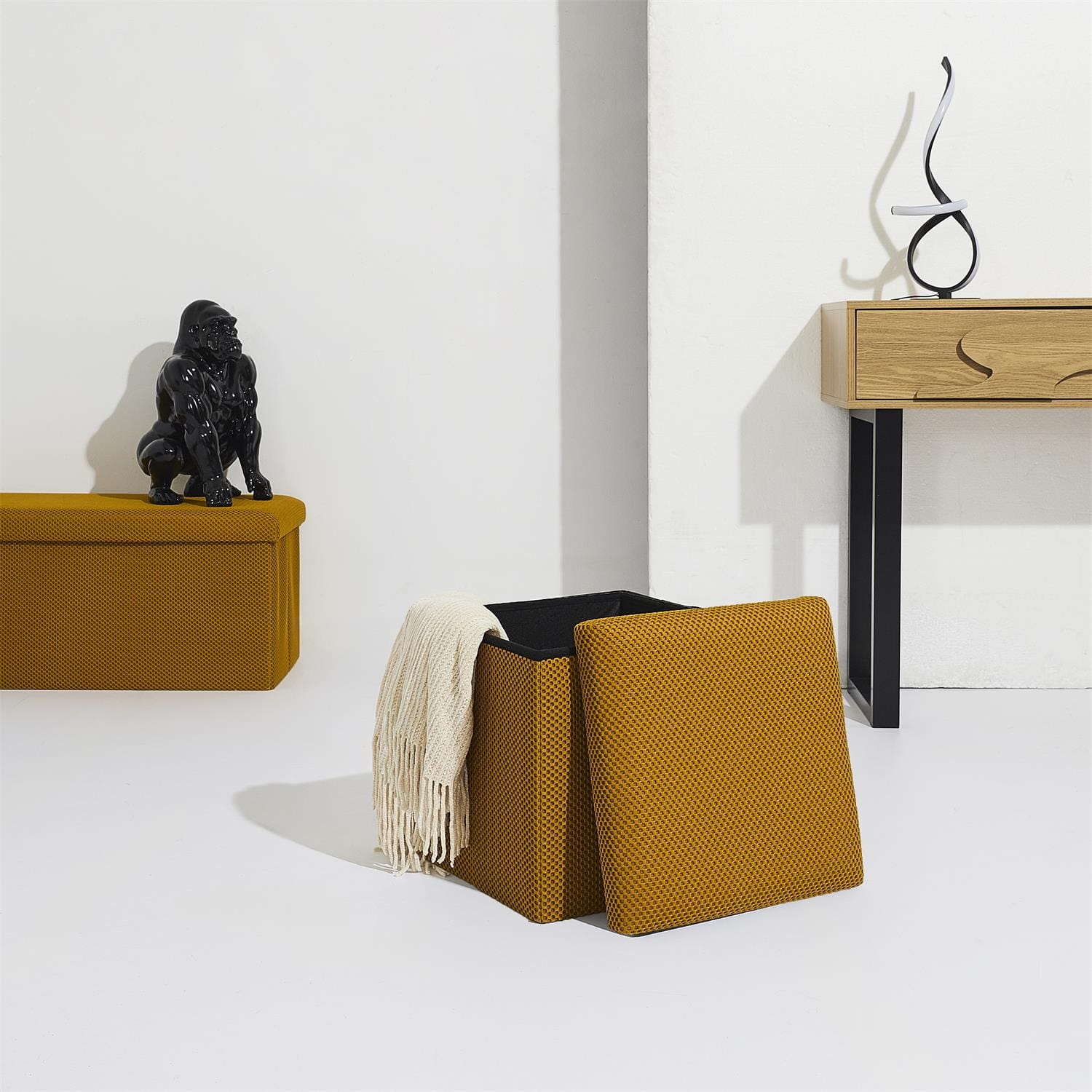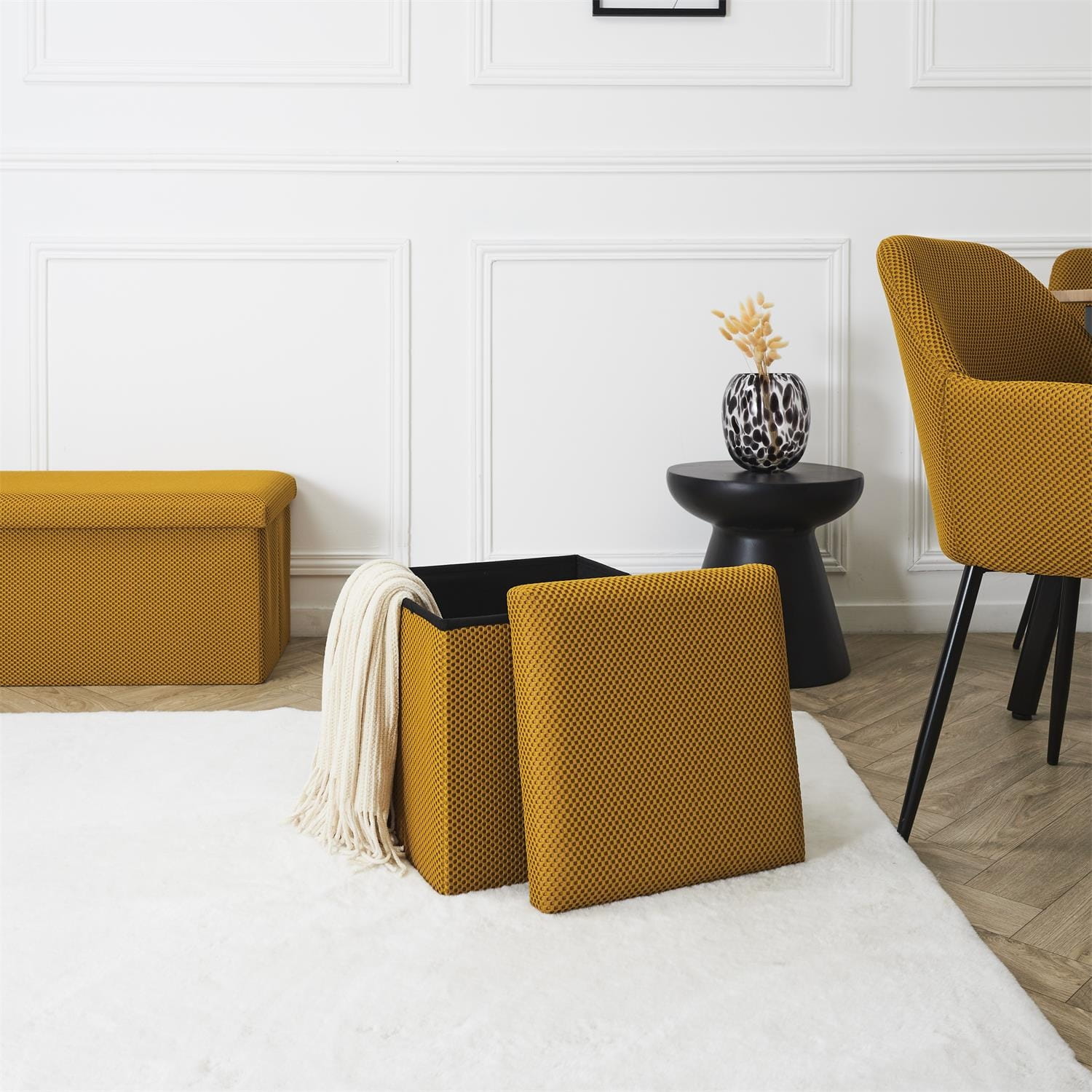 Składana pufa żółta ze schowkiem – trójwymiarowa tkanina / MDF