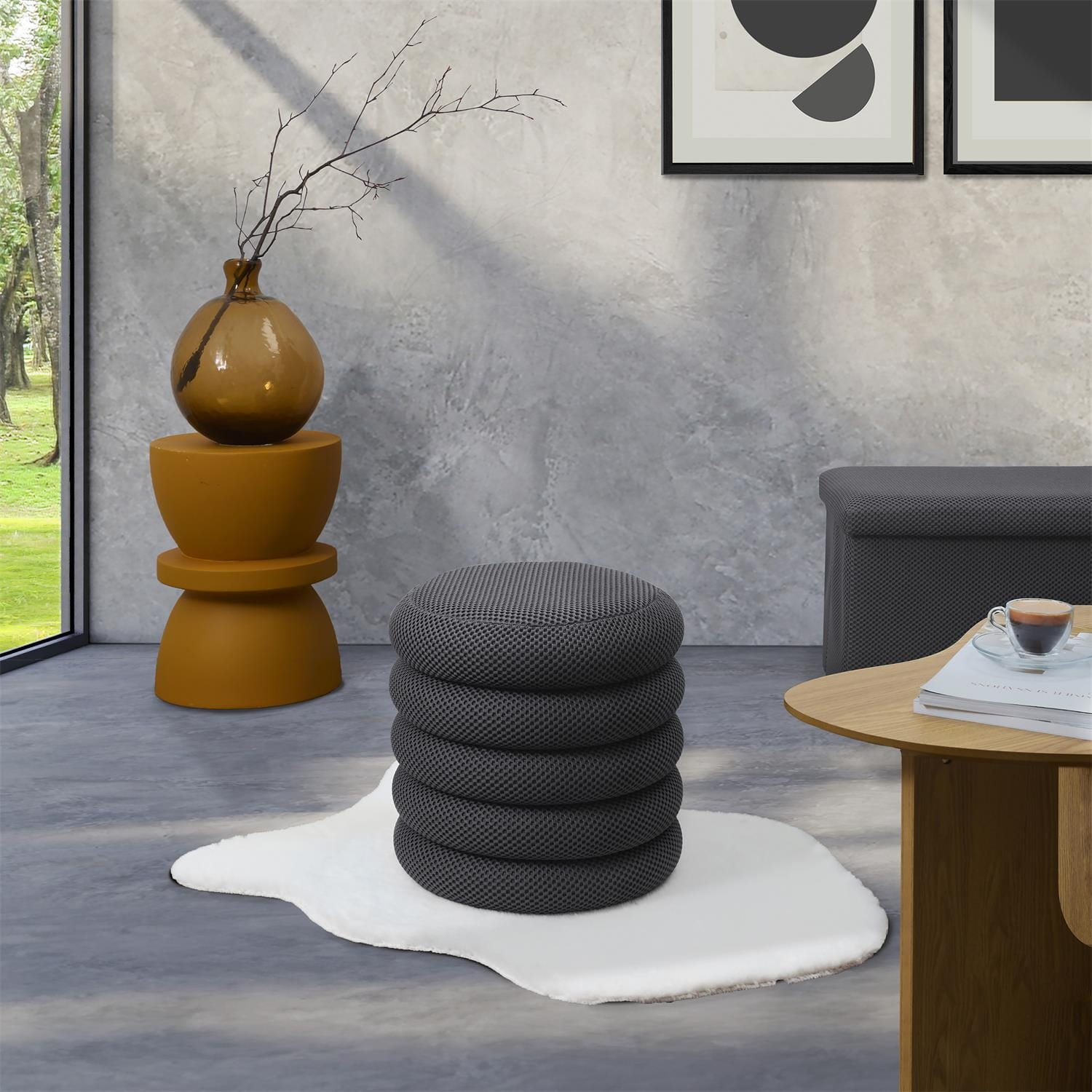 Pufa ATOM to stylowy i funkcjonalny dodatek do nowoczesnych wnętrz. Jej okrągłe siedzisko pokryte zostało trójwymiarową tkaniną, która nadaje całości eleganckiego, ponadczasowego wyglądu.