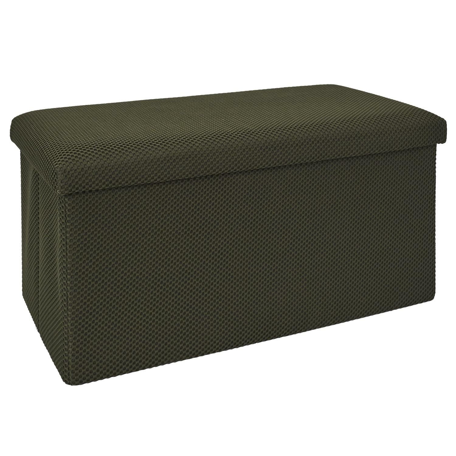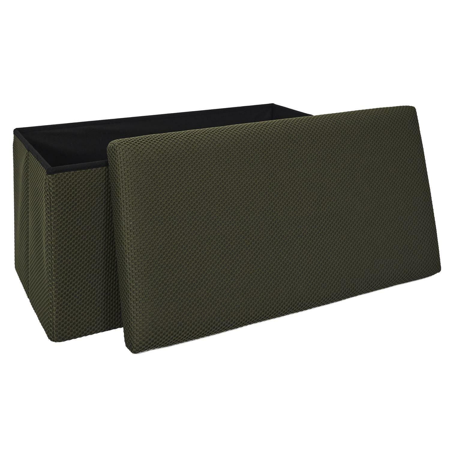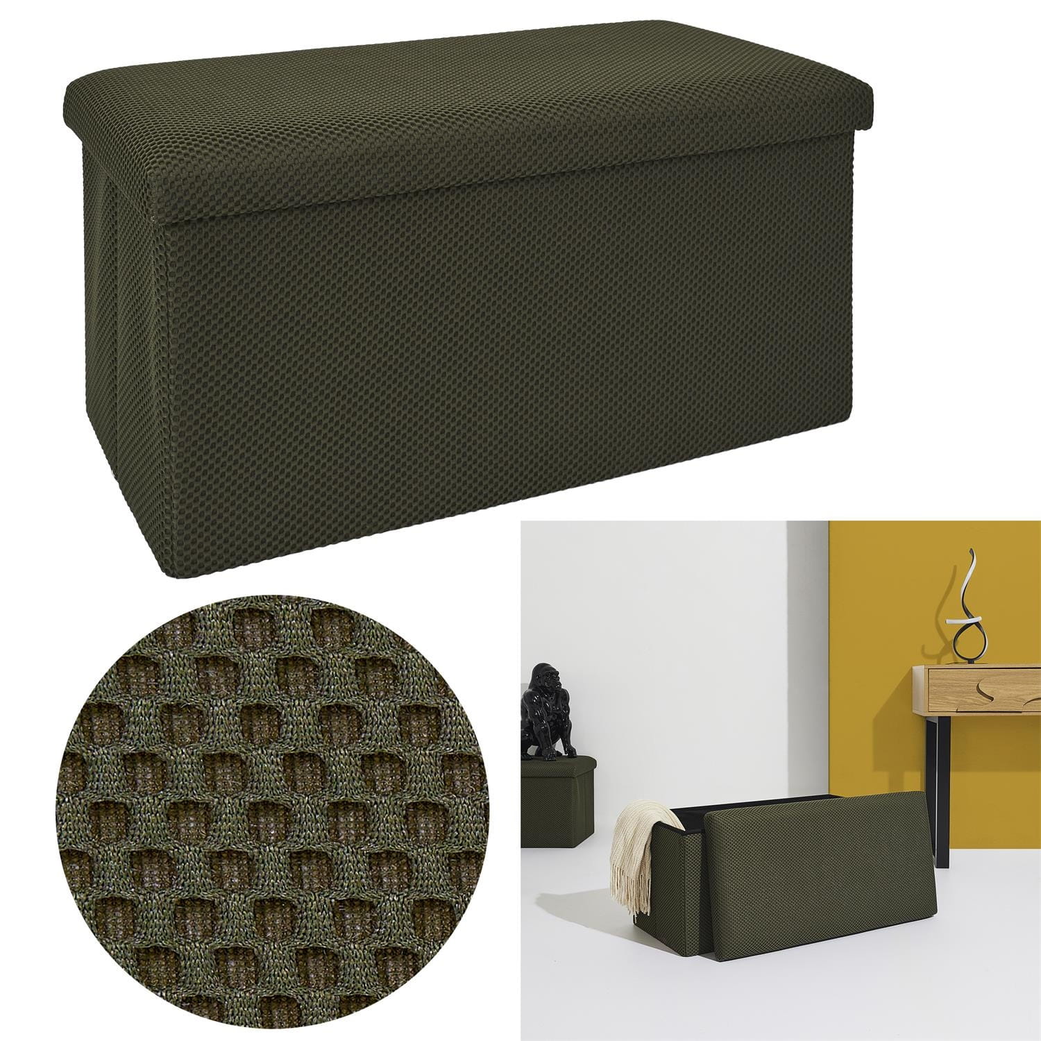 Składana pufa khaki ze schowkiem – trójwymiarowa tkanina / MDF