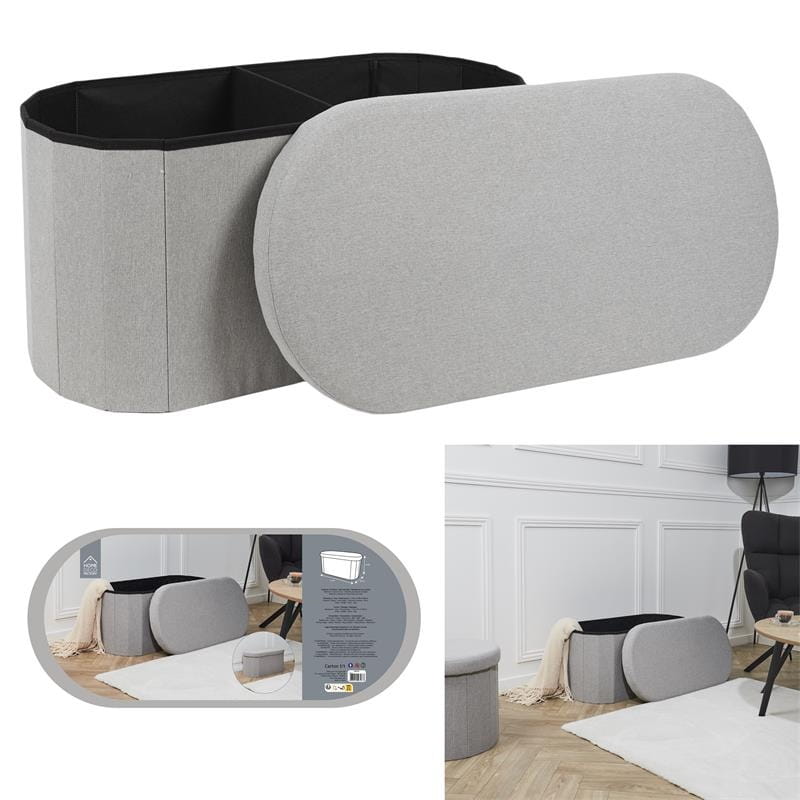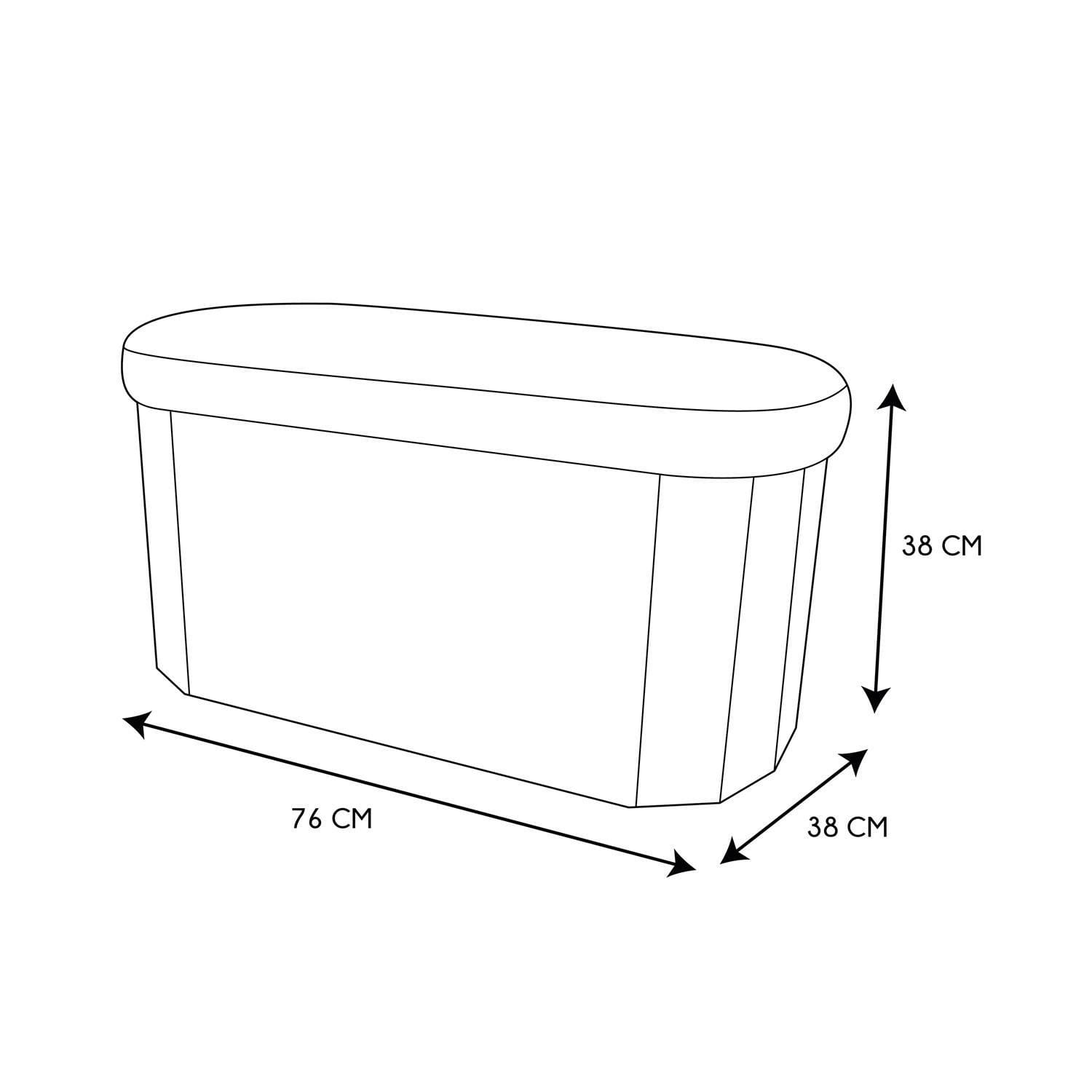 Składana ława wykonana została z MDF, pianki tapicerskiej oraz tkaniny 100% poliester.