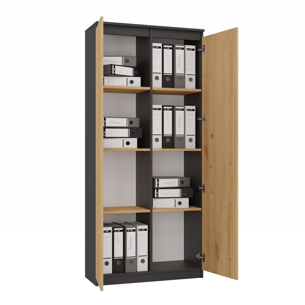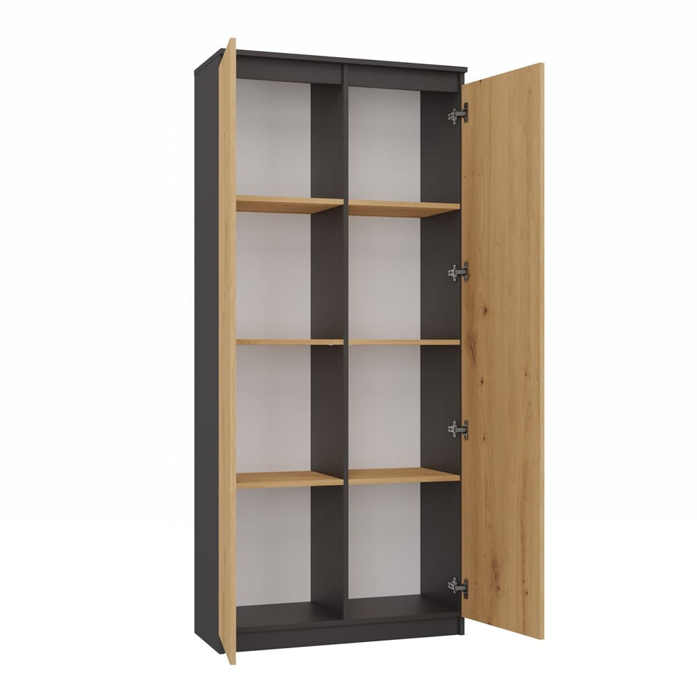 Regał zamykany RS-80 HEMN – antracyt / dąb artisan, 8 półek