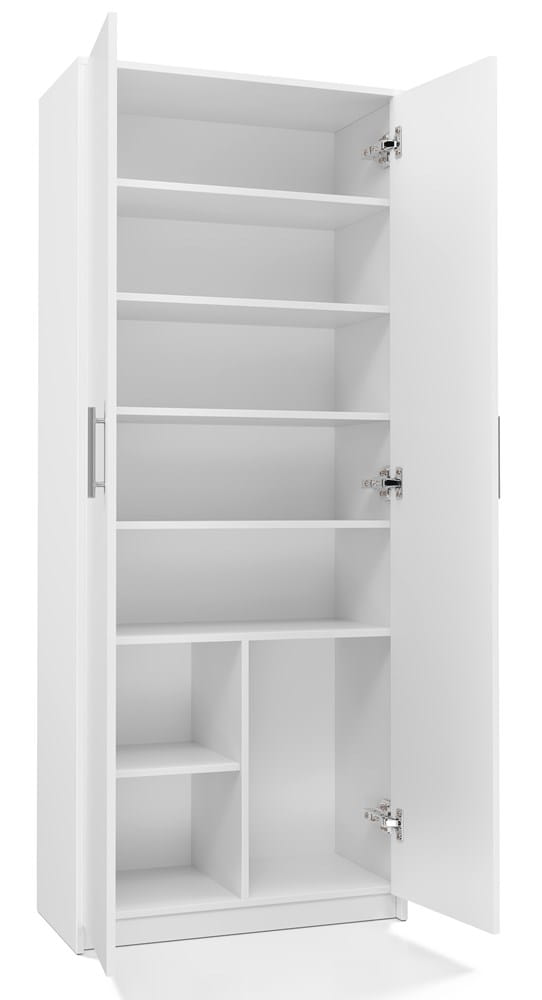 Wyposażony w 8 przestronnych półek oraz 2 zamykane fronty, regał pozwala na uporządkowanie dokumentów, książek, zabawek i innych przedmiotów codziennego użytku. Prosta, nowoczesna linia oraz brak widocznych otworów montażowych na bokach to gwarancja estetyki i dopracowanego wyglądu.