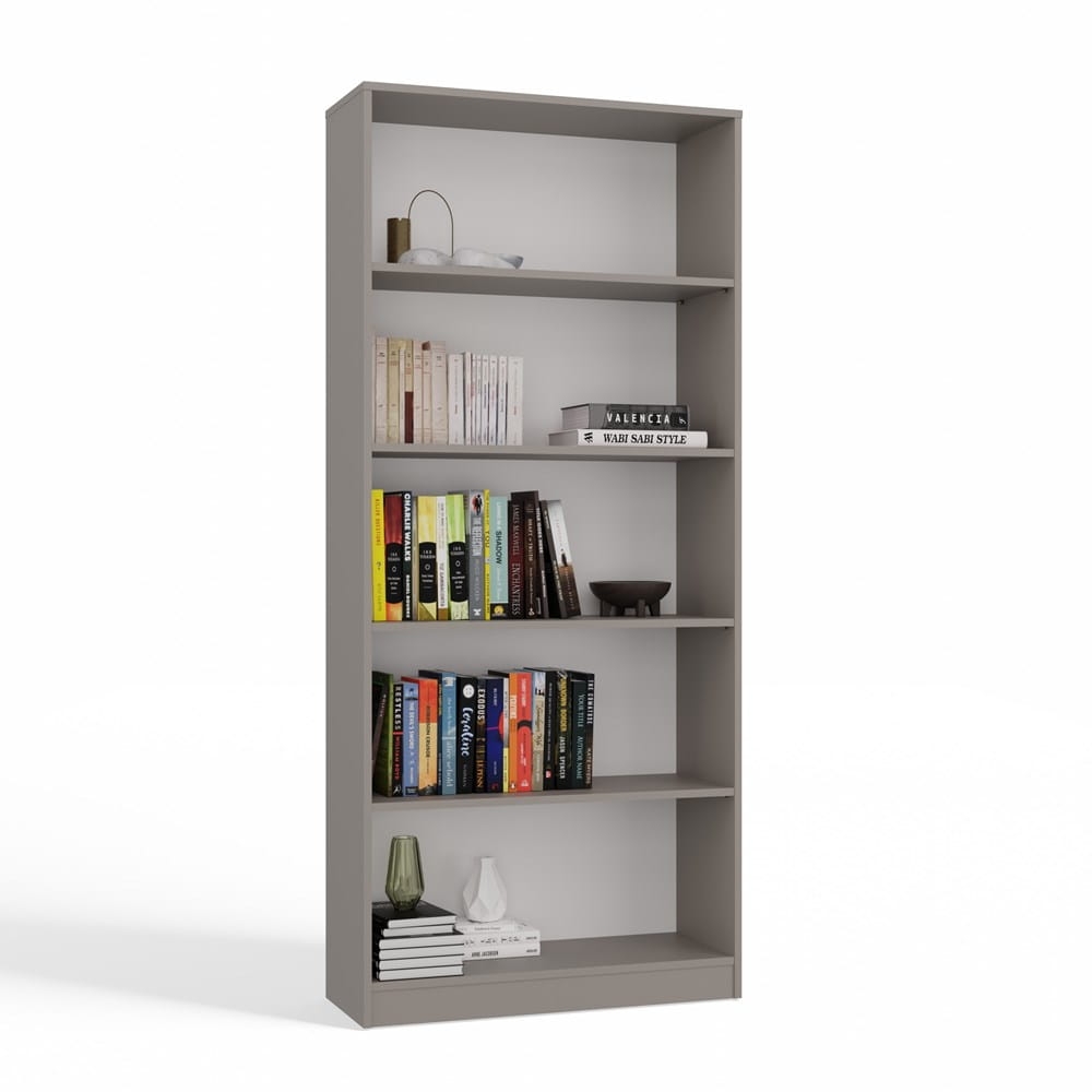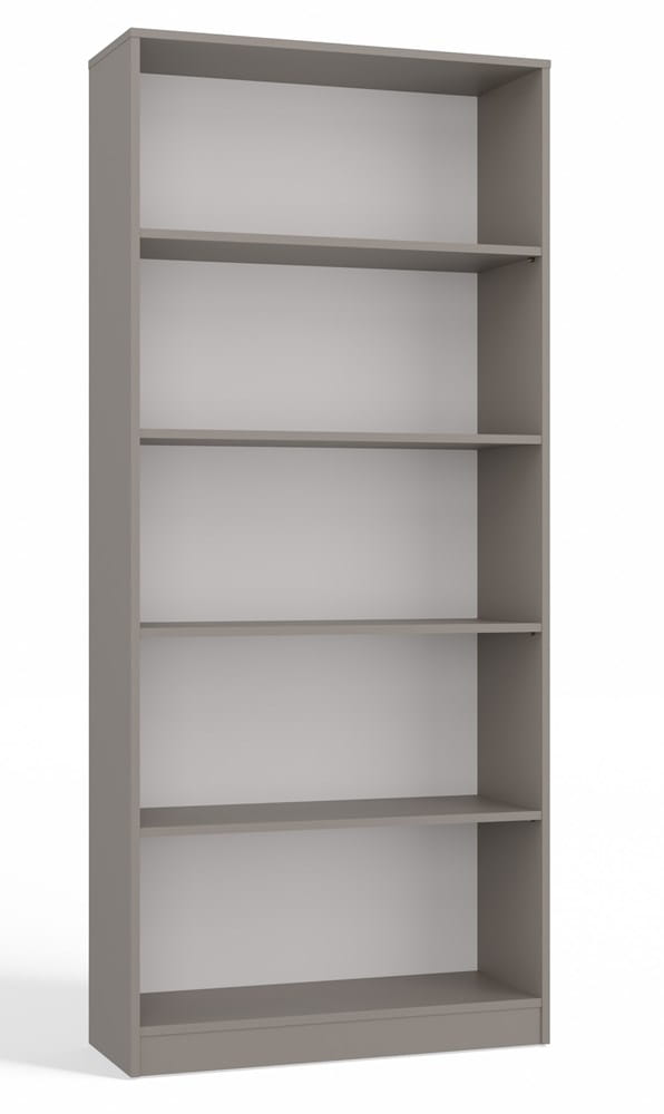 Regał R80 w kolorze glina (odcień szarości) to eleganckie i funkcjonalne miejsce na książki, segregatory, zabawki oraz akcesoria biurowe.