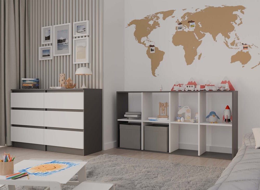 Regał komorowy, na książki lub zabawki, antracyt/biały Malax 2x4