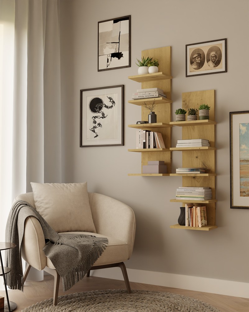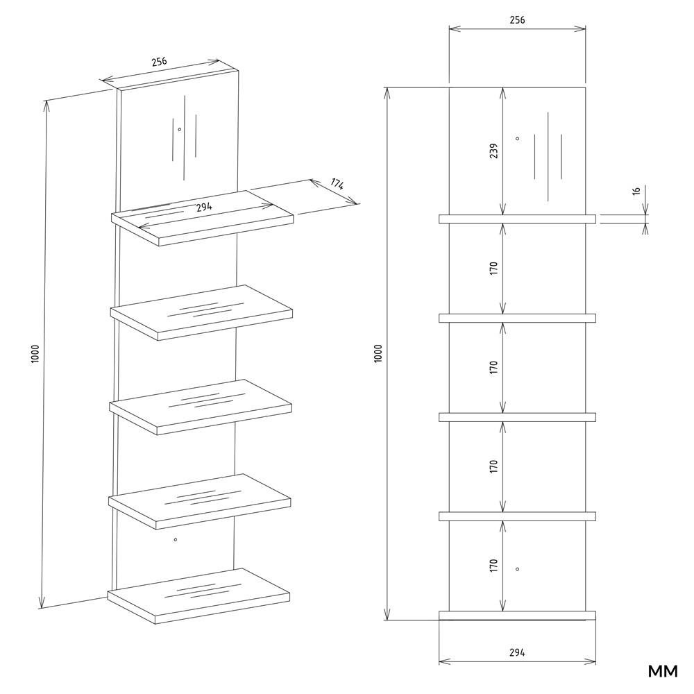 Smukły kształt oraz minimalistyczny design pozwalają stworzyć praktyczną strefę przechowywania bez przytłaczania przestrzeni. Regał ścienny R5P łączy estetykę z codzienną wygodą użytkowania.