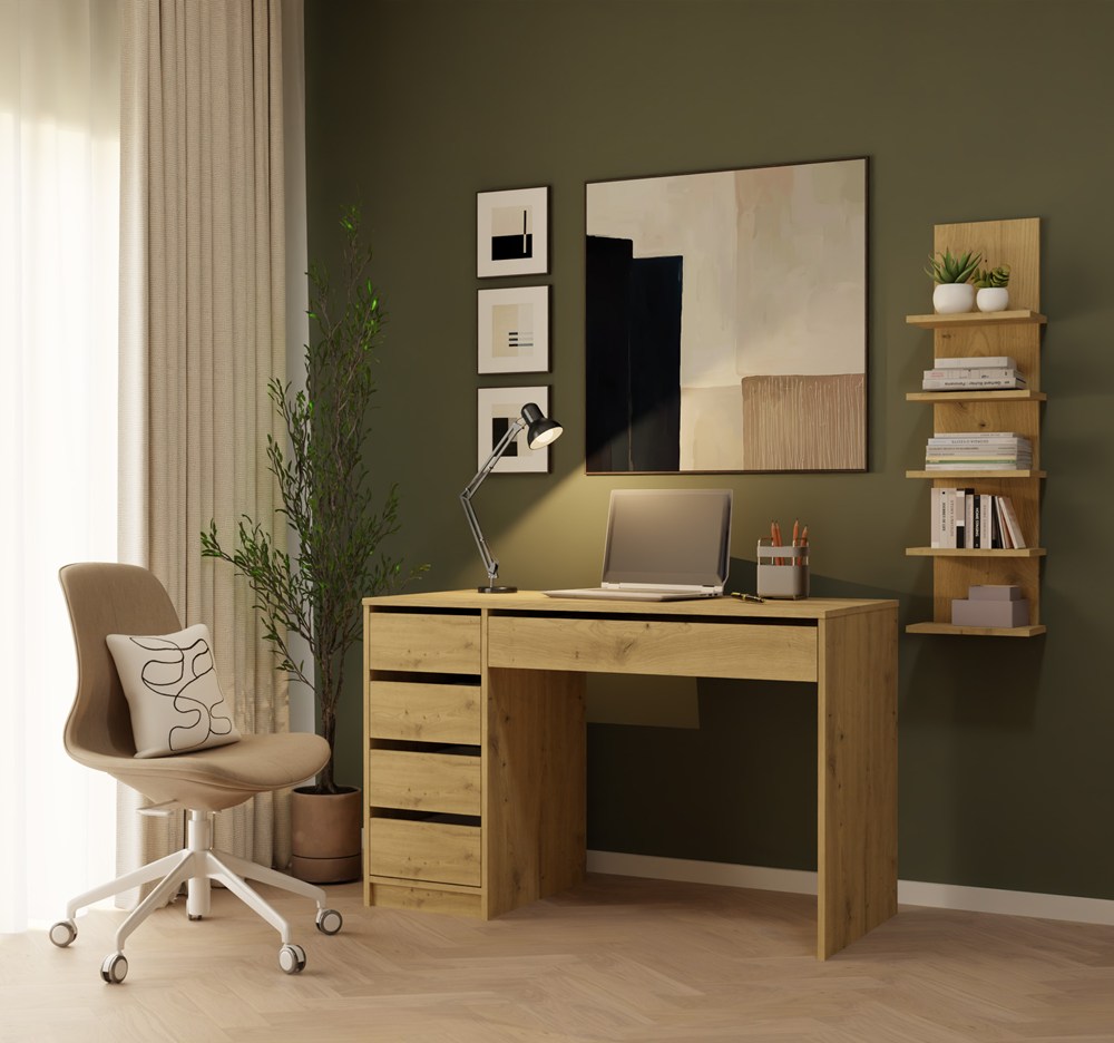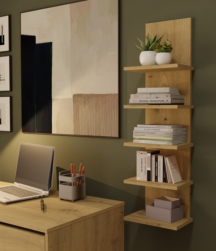 Dzięki pionowej konstrukcji z 5 otwartymi półkami świetnie sprawdzi się tam, gdzie liczy się maksymalne wykorzystanie miejsca – w salonie, pokoju dziecka, pokoju nastolatka, domowym biurze czy przedpokoju.